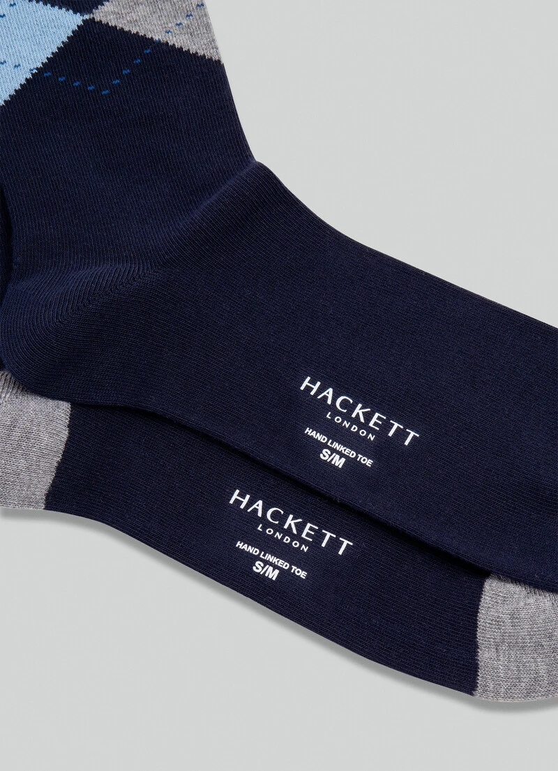 This set of two socks in brushed cotton stand out for their special colour contrast on the toe and heel on one pair, as well as the exceptional diamond pattern on the shaft on the other pair. Other features such as our iconic branding stamped on the arch add a distinctive touch.