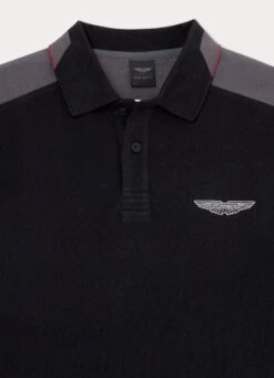 This garment is a seasonal update to our iconic colour block Aston Martin polo. In pure cotton piqué, this polo features a solid tone on the front body and a shoulder panel that contrasts with the colour on the back. This detail is repeated on the neck to create a modern design.