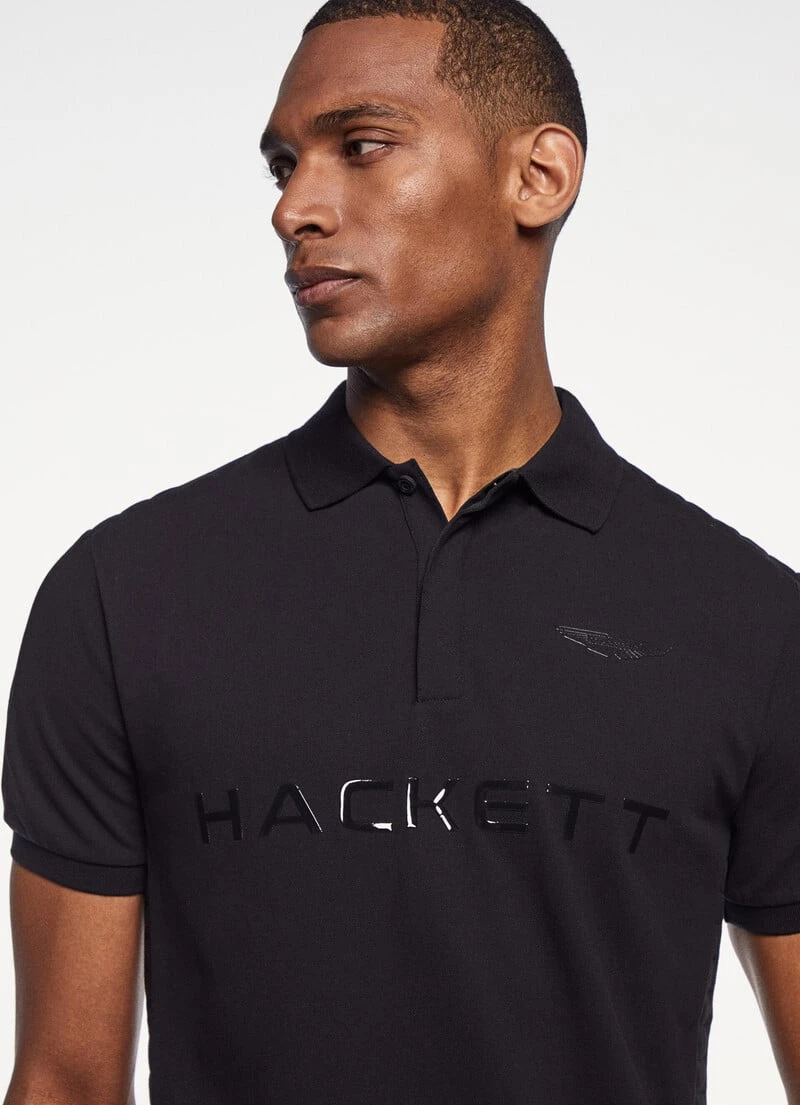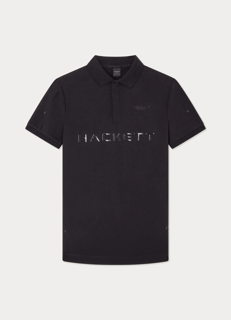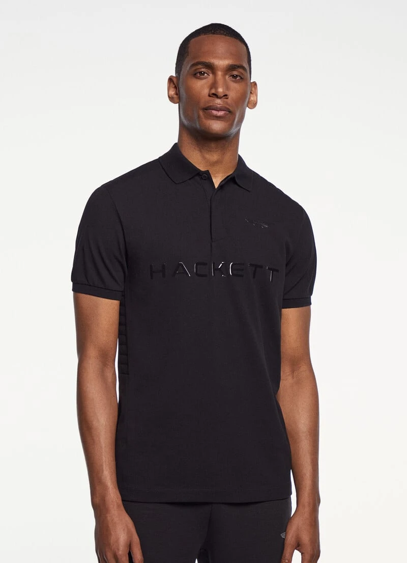 This polo shirt is an iconic seasonal update with dart seams on the shoulder and side, finished with tonal heat tabs. It features a silicone HACKETT logo across the chest and a moto quilting shoulder design inspired by motorsports. The buttons are hidden in the placket for a clean finish.