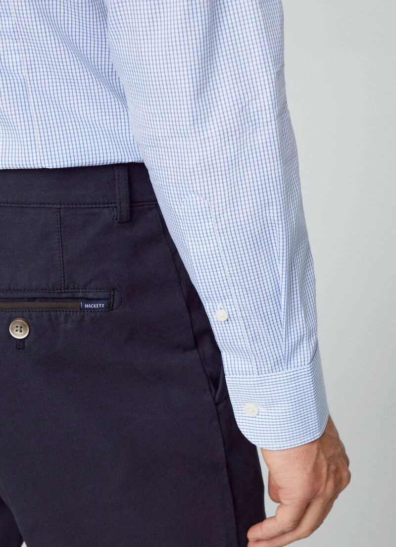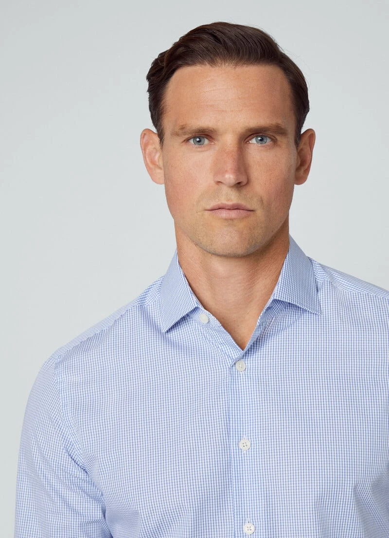 Crafted in a soft cotton fabric and featuring a stylish small check print, this long sleeve shirt features a practical spill and stain resistant technical coating. Details such as the slim fit and cropped Kent collar make it a must-have item in your wardrobe.