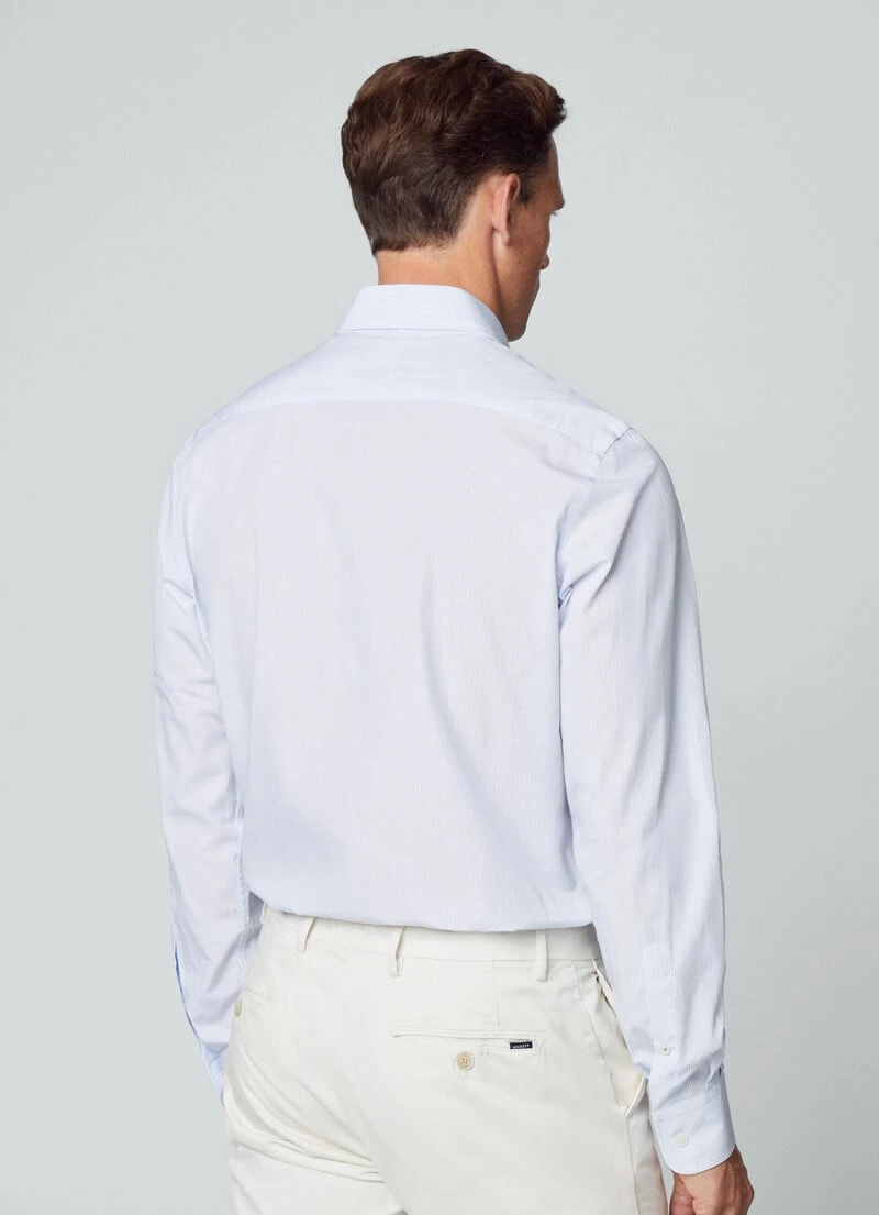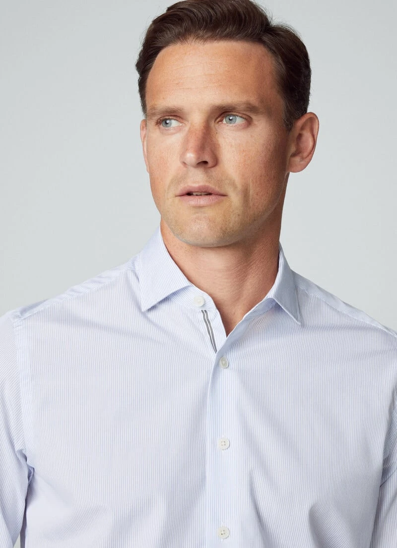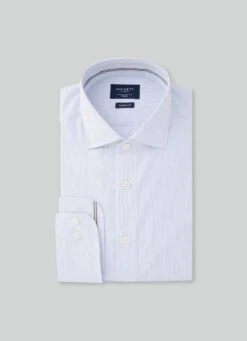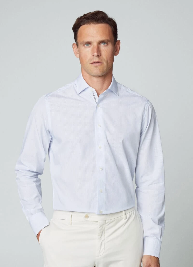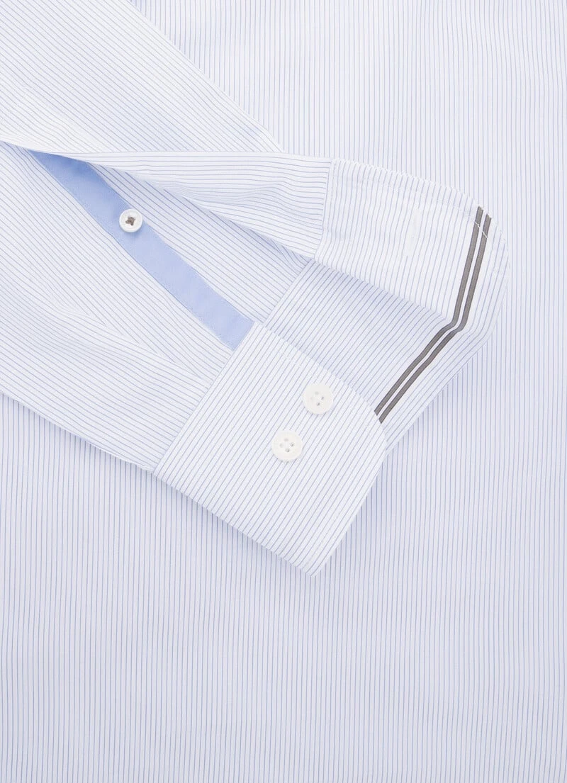 Crafted in a cotton twill fabric, this long-sleeve shirt features a subtle Bengal stripe design and an eye-catching, two-tone trim under the collar, placket and cuffs. The classic style of the cut-out Kent collar and the elegance of the French button fastening make this garment a sure choice for any occasion.