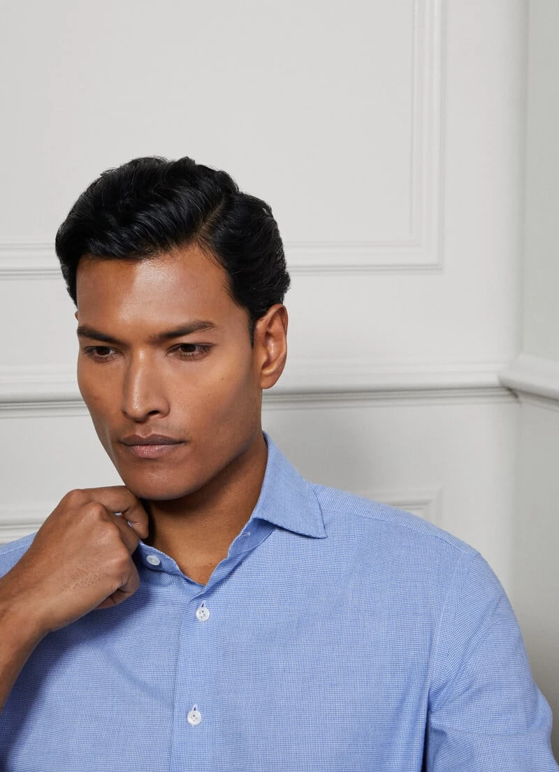Crafted in fine brushed cotton cloth made in Italy, this shirt from the Savile Row collection stands out for its houndstooth print that contrasts perfectly with the eye-catching nacre buttons. The versatility and elegance of this garment make it a must-have in your wardrobe to combine with your casual looks.