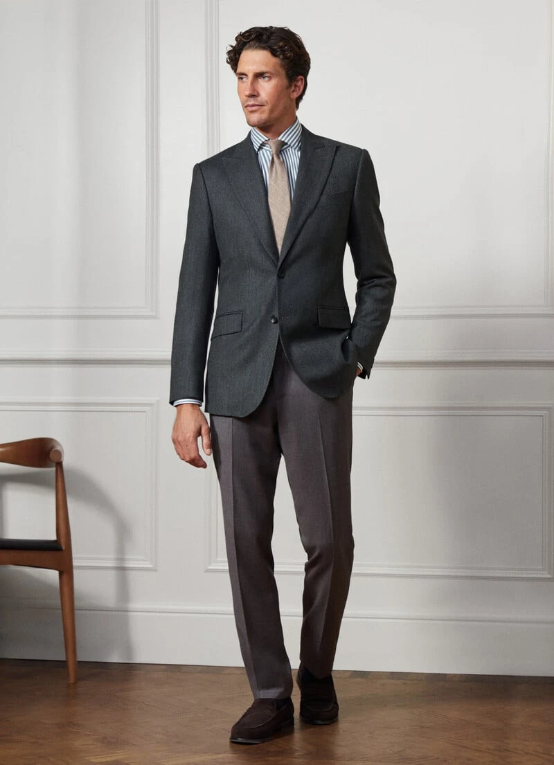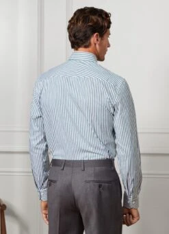 This shirt from the Savile Row collection is ideal for the autumn and winter season due to the warmth of the brushed melange cotton. The striking striped design contrasts perfectly with the elegant nacre buttons that emerge from our traditional French placket. Combine this garment with a pair of chinos from our latest collection to complete your casual look.