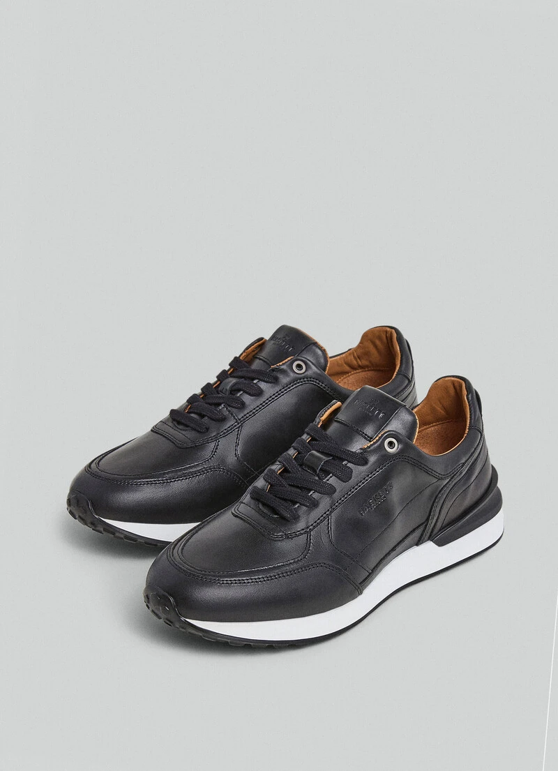Crafted in Portugal, these trainers feature a formal look due to the premium leather fabric in which they are made that contrasts perfectly with the decorative, hand-stitching around their edges. Combine them with a pair of our seasonal classic chinos for a casual look.