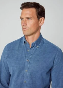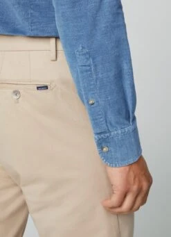 Crafted in a fine cotton corduroy fabric, this button-down slim-fit shirt features a striking indigo hue that adds style to any casual look. This comfortable and versatile garment perfectly combines with our blazers and chino trousers.