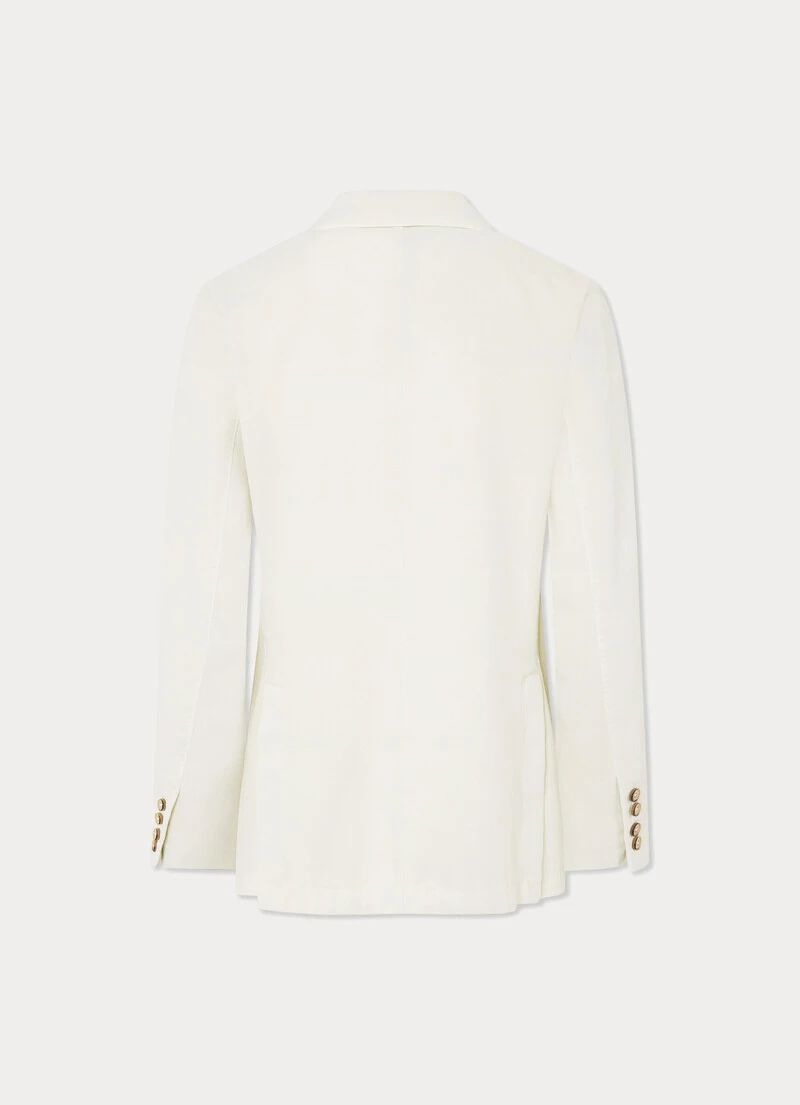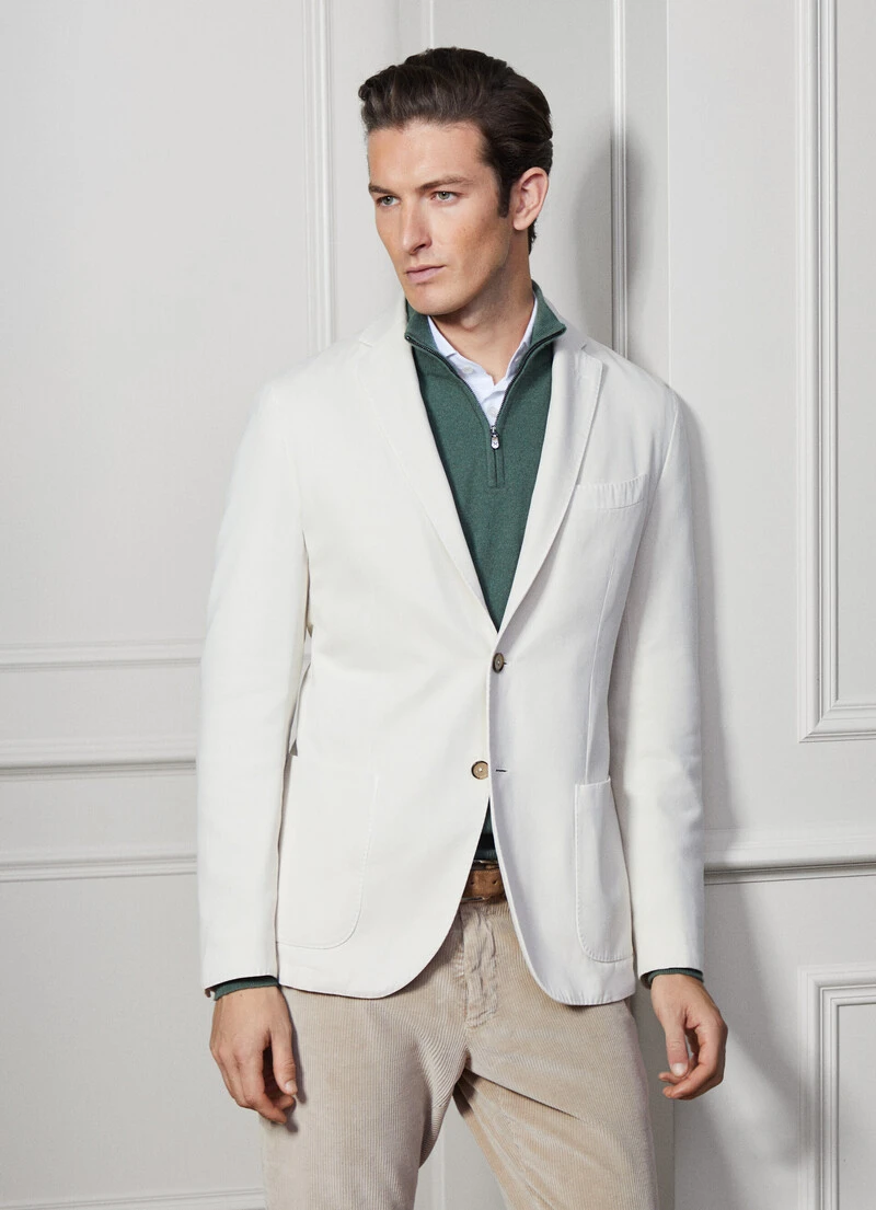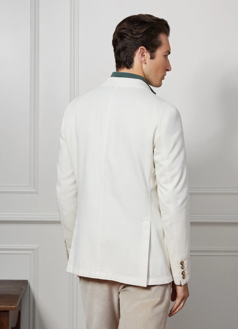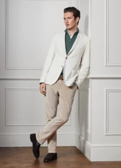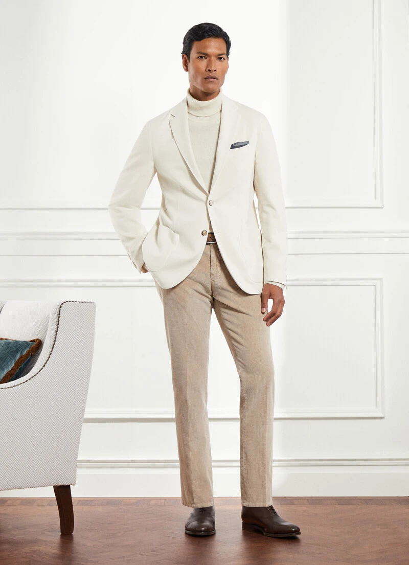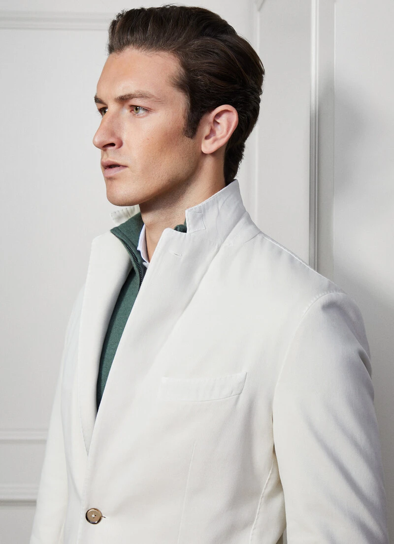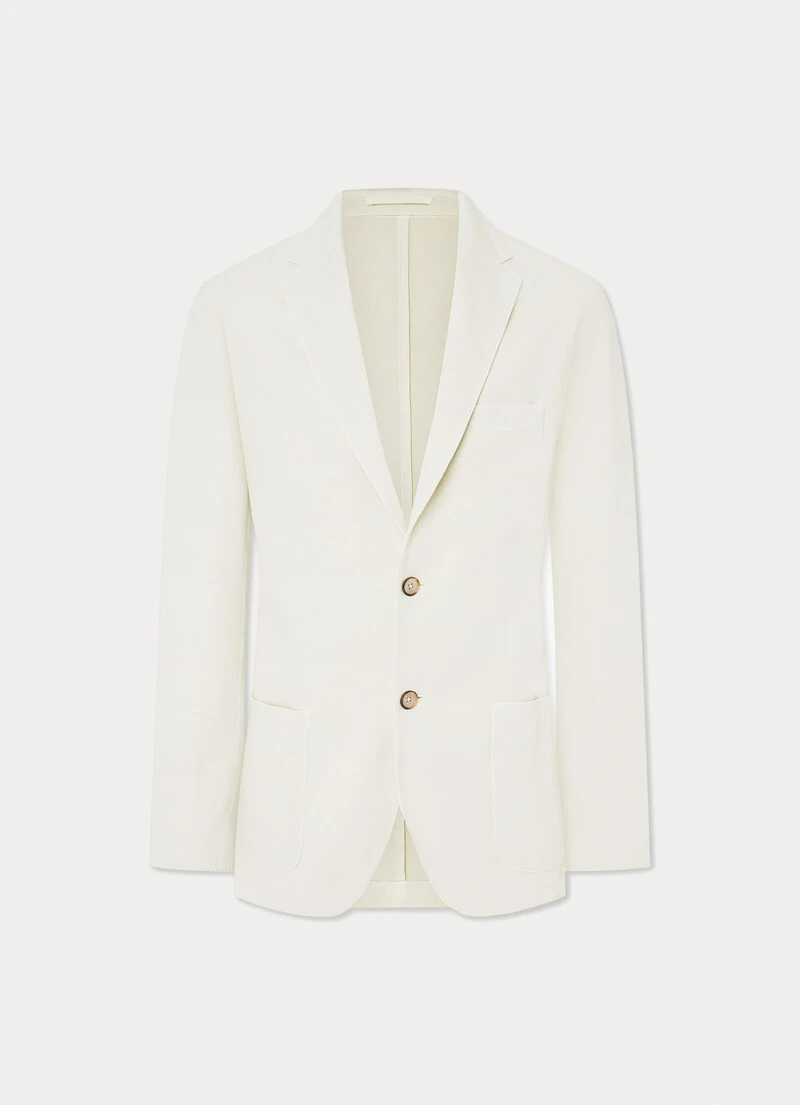 With its relaxed construction using a garment-dyed fabric and no lining, this blazer from the Savile Row collection is perfect for complementing your weekend look. Crafted from a unique blend of cotton and cashmere twill fabric, this garment features a classic notched lapel collar and practical patch pockets.