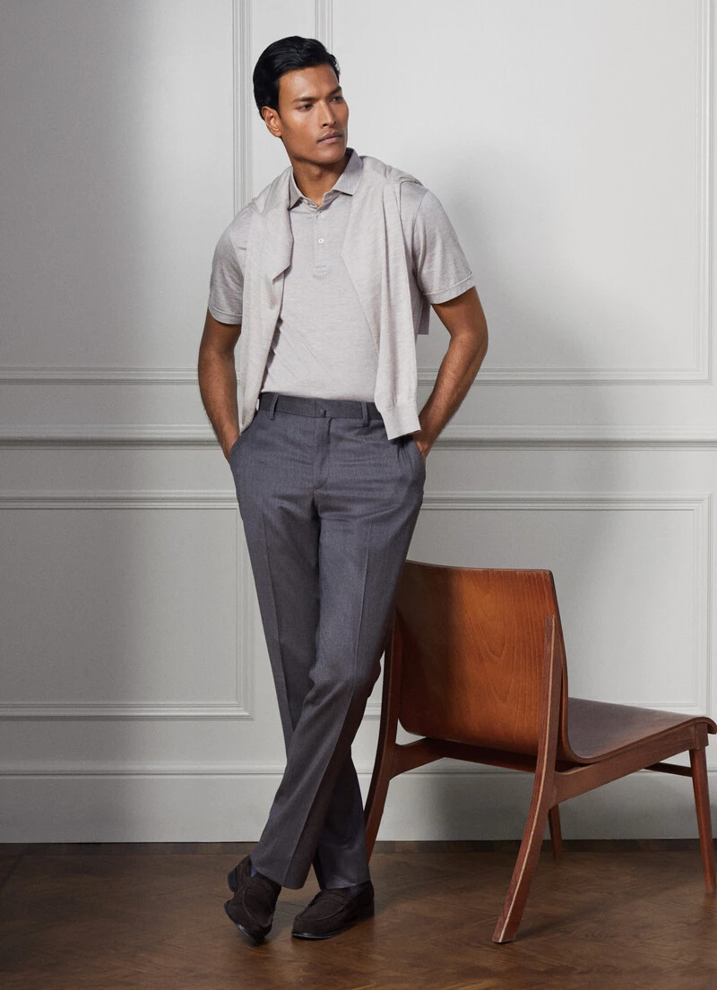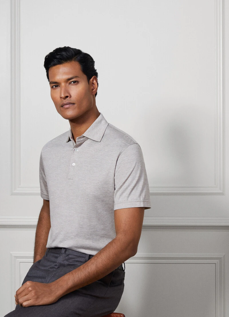 The contemporary style of this long-sleeved polo shirt from the Savile Row collection is reflected in its careful construction in a cotton and silk blend. It features an eye-catching melange texture and ribbed details on the collar and cuffs to keep you warm. Pair it with one of the jackets from our latest collection to complete your casual look.