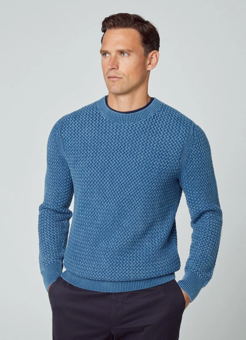 This cotton crew neck sweatshirt features a basket knit fabric and garment dye for a contemporary look. Ribbed detailing on the neckline, cuffs and hem gives this versatile garment a stylish personality. This sweatshirt is ideal to wear as a mid layer with one of our jackets from the latest collection.