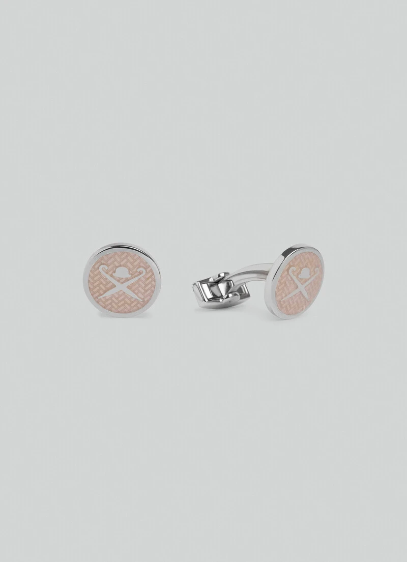 Button cufflinks featuring our iconic cross brolly logo on an enamel background for excellent colour contrast. These handmade accessories are rhodium plated for that shiny finish and the Hackett logo is engraved on the toggle clasp.