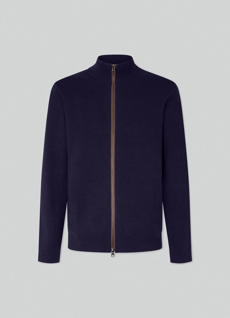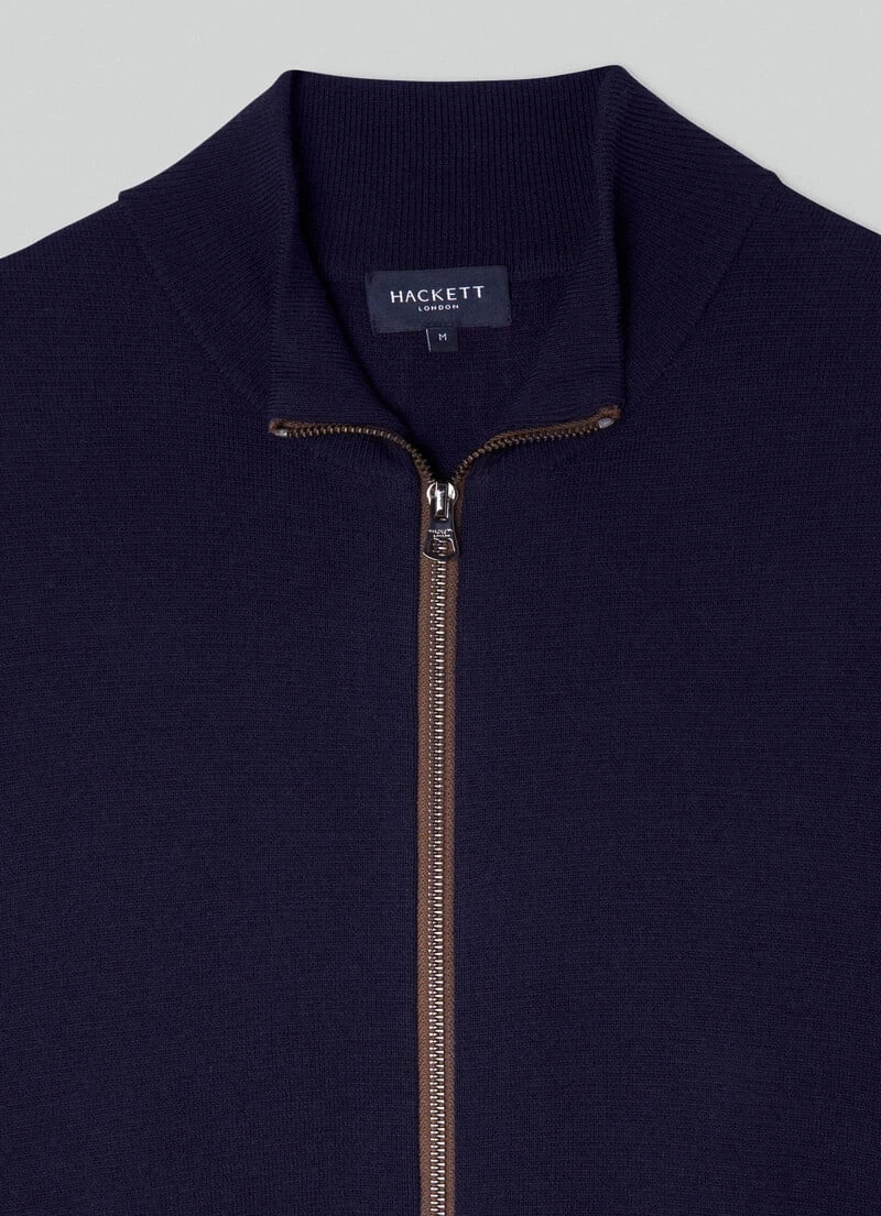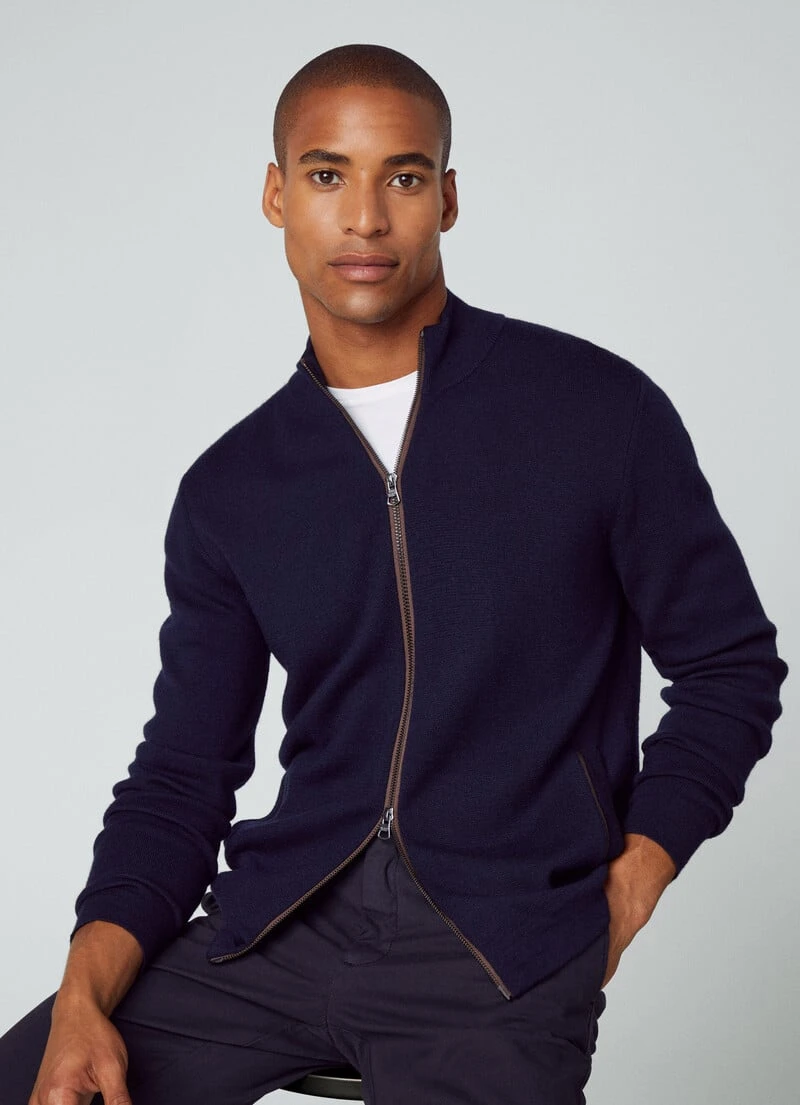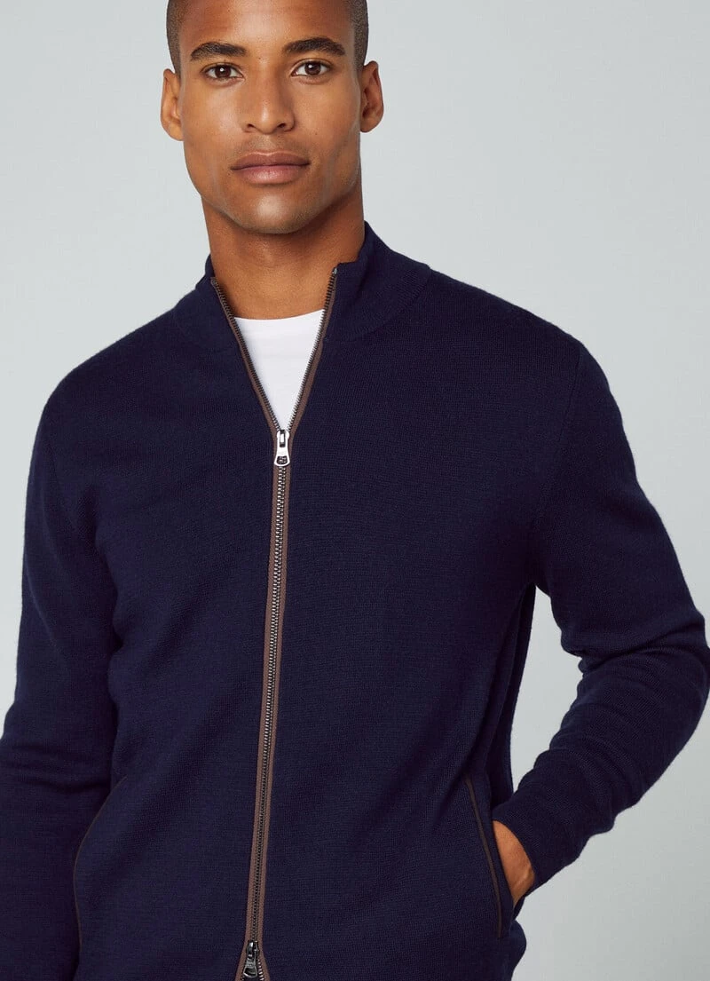 Crafted in pure merino wool, this perkins-collar milano knit jacket features an eye-catching, colour-contrast zipped front fastening and handy on-seam side pockets. The structure of this jacket is perfect to use as a mid layer and combine with one of the jackets from our latest collection.