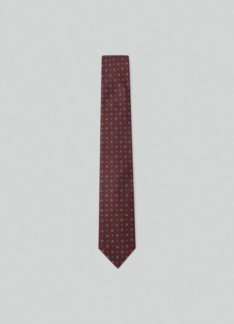 This structured tie with a particular geometric design is the perfect complement to your suits and an essential item in your wardrobe. Made of 100% silk, this tie is a versatile and elegant garment that will match any look.