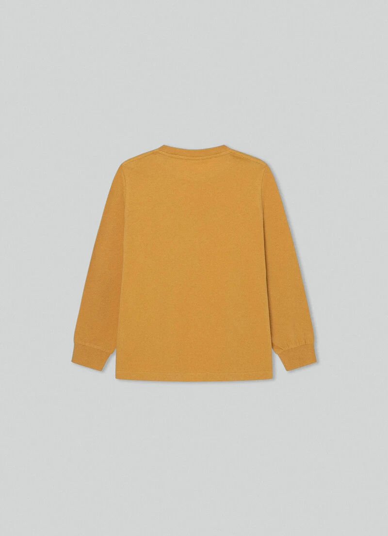 Crafted in soft cotton jersey, this long-sleeved T-shirt stands out by the carbon-brushed effect that gives the fabric a silky, velvety texture. The printed illustration on the front combines words and images related to nature.
