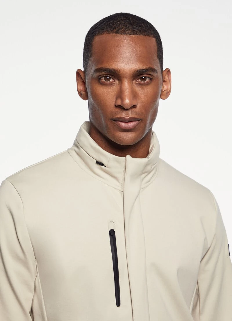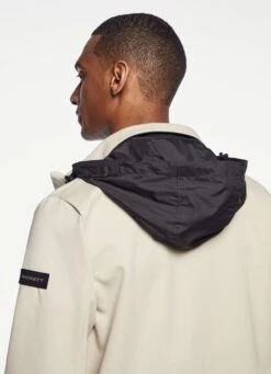 This sports jacket will complete any everyday look due to its eye-catching design. In stretch cotton fabric, this jacket features a water-resistant shell and high collar with an invisible zip for the contrasting-colour roll out hood.