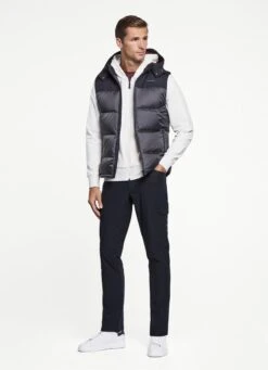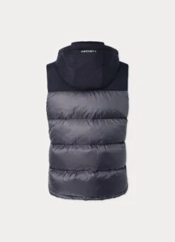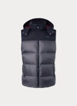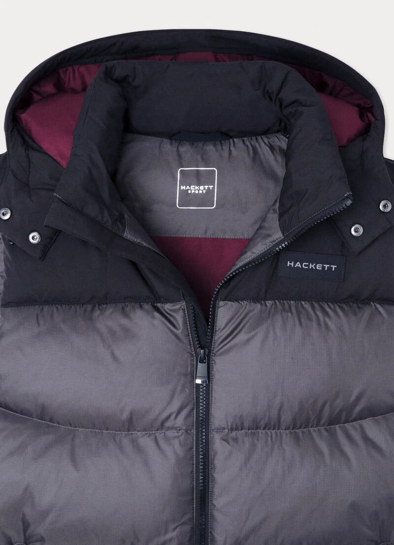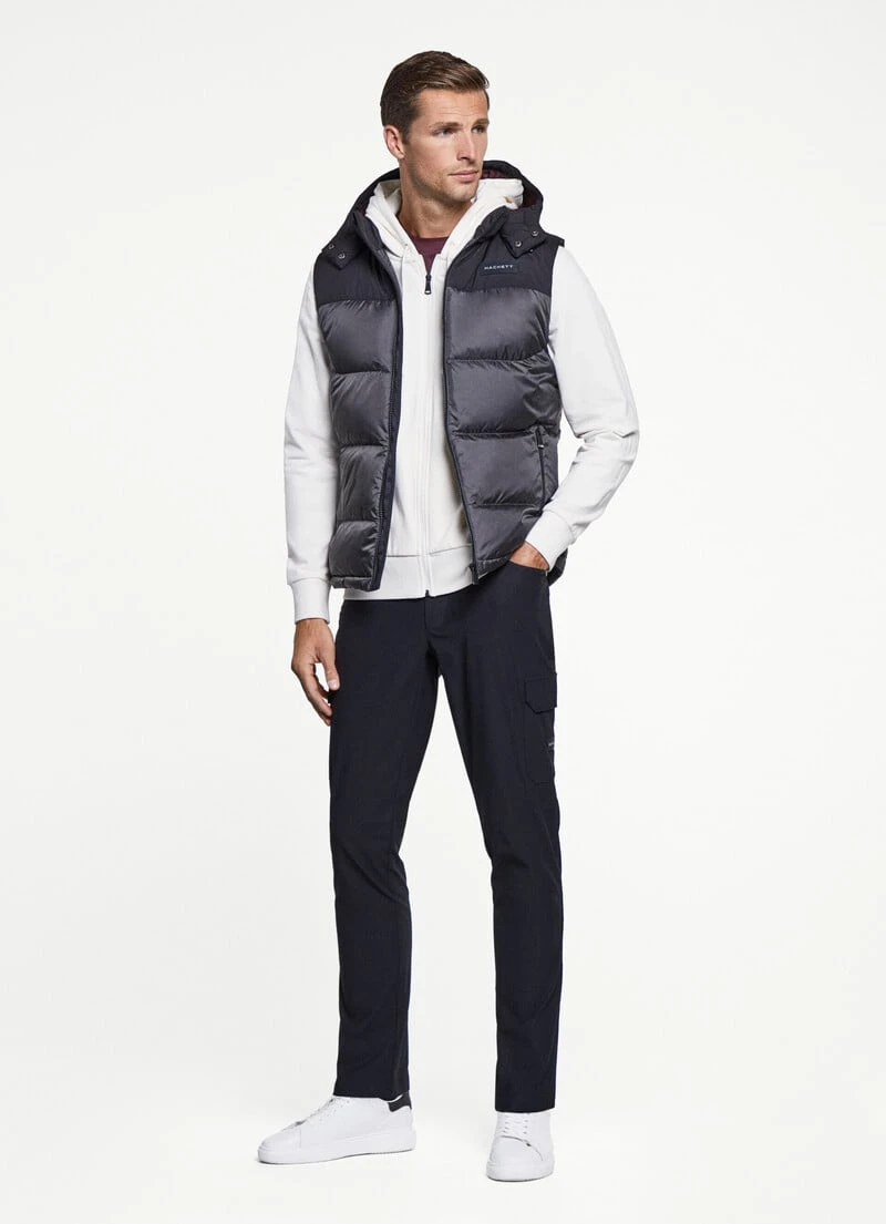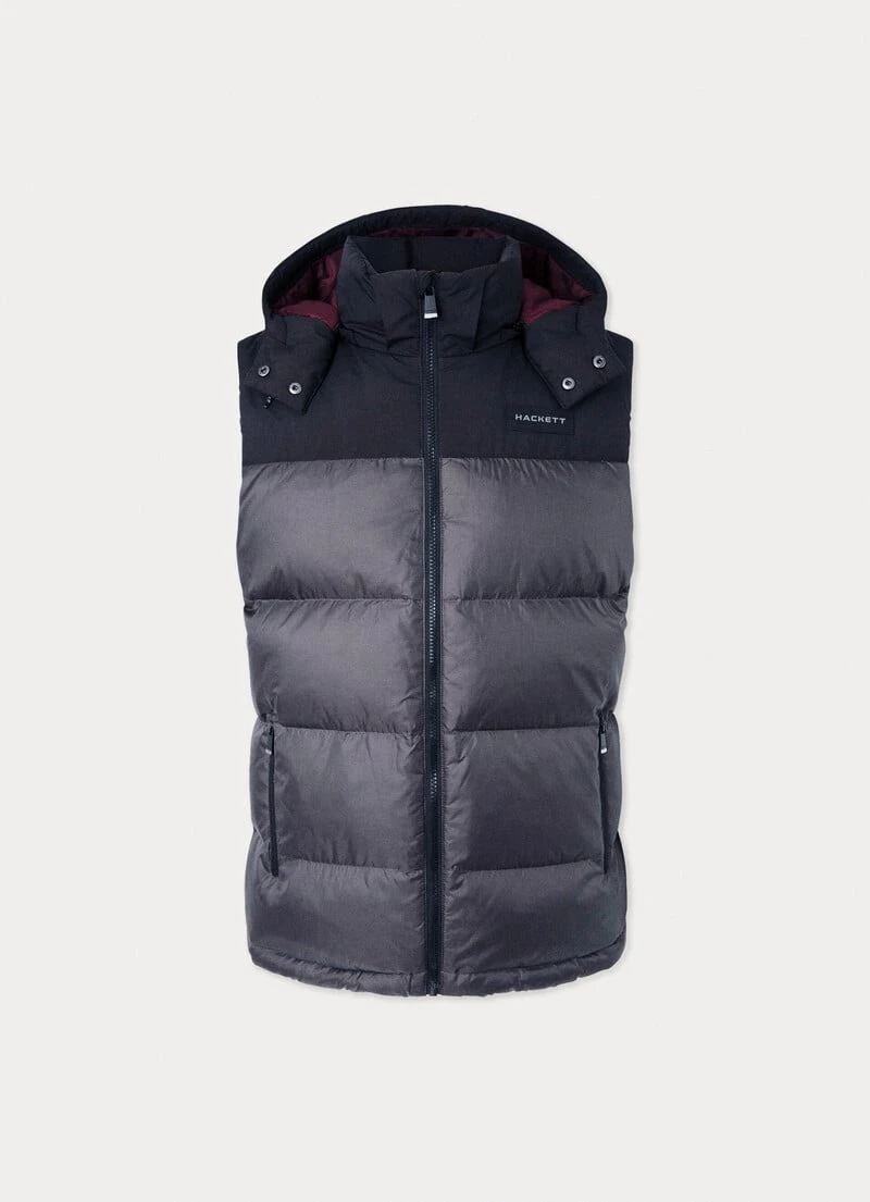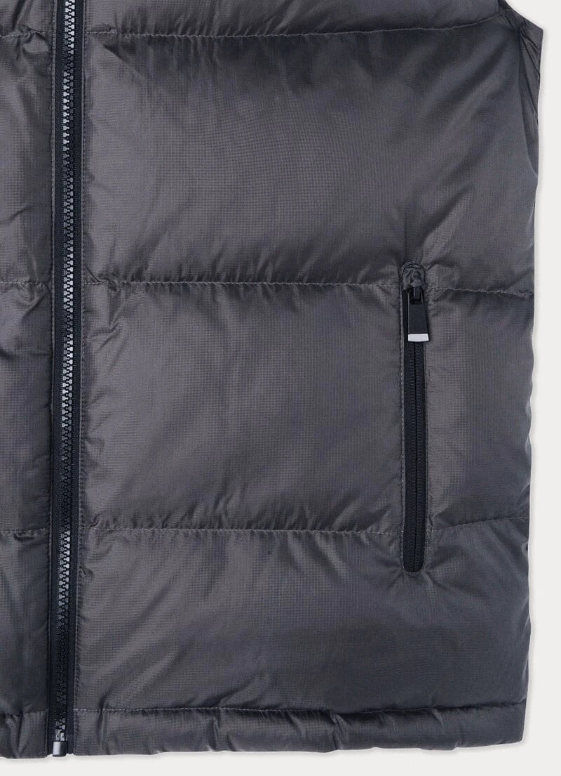 This puffer gilet combines a light and durable black micro fibre upper with a thick ripstop fabric in shades of grey for complete protection on the coldest days of the winter season. This garment may be paired with one of our seasonal sweatshirts or jerseys.