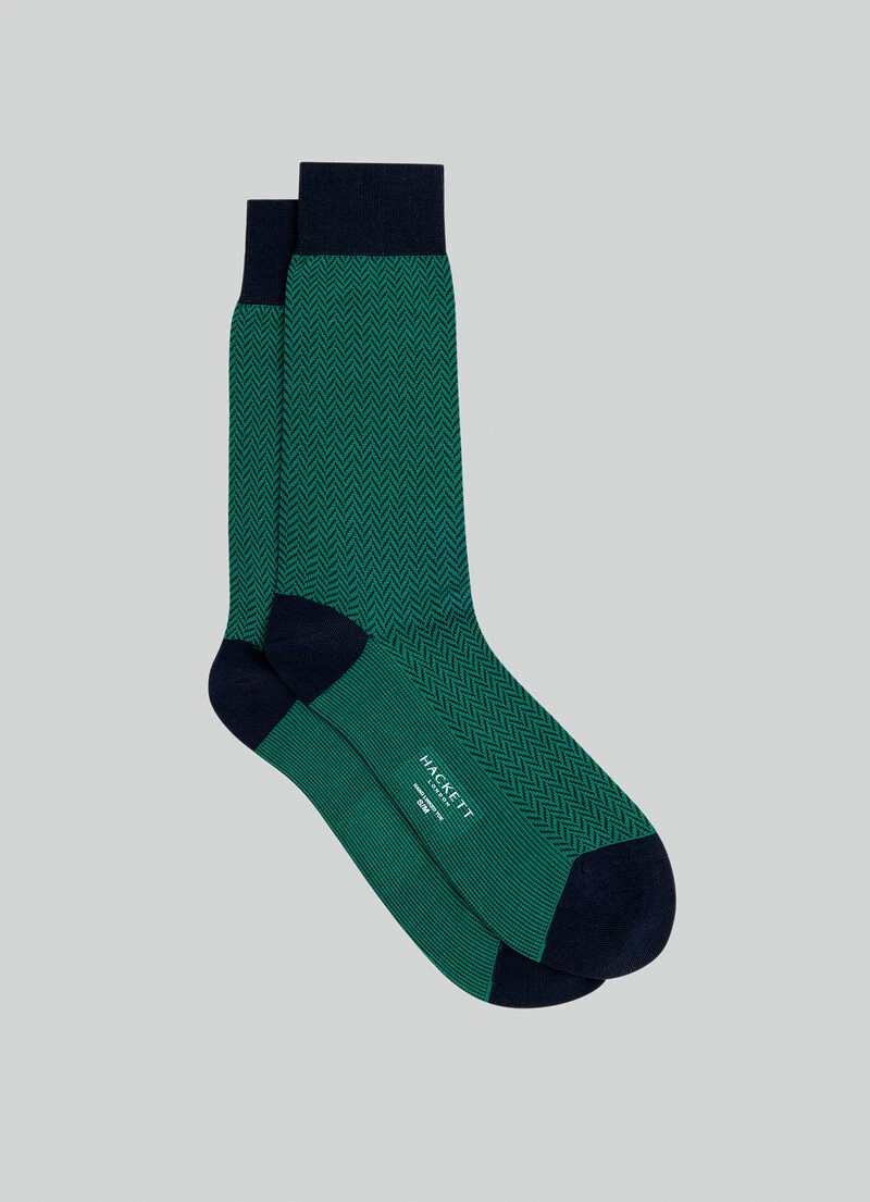 These socks will provide greater comfort and durability due to their mercerised cotton construction. They feature eye-catching details such as their elegant design in a herringbone pattern and contrasting colours on the heel and toe.