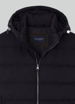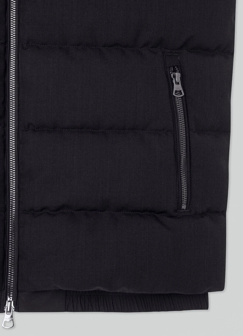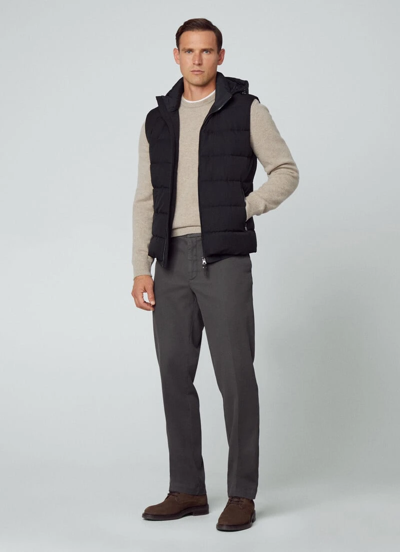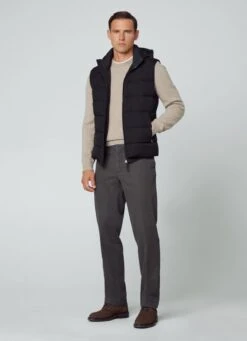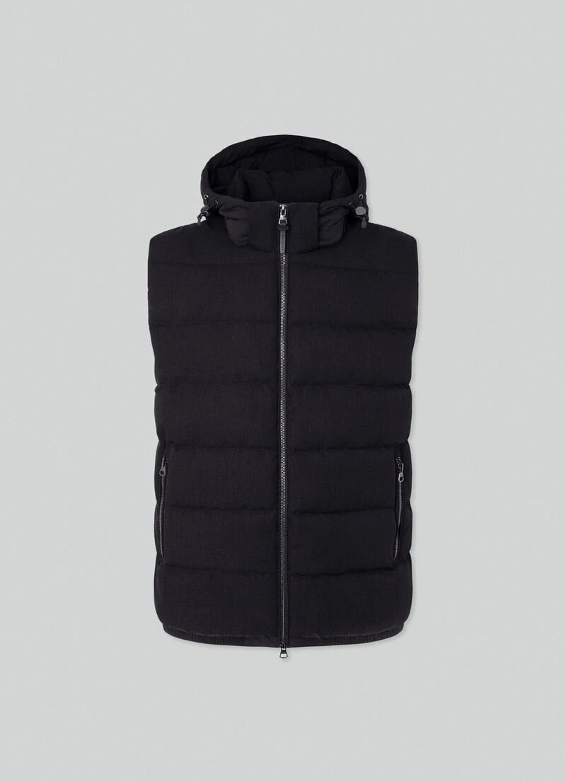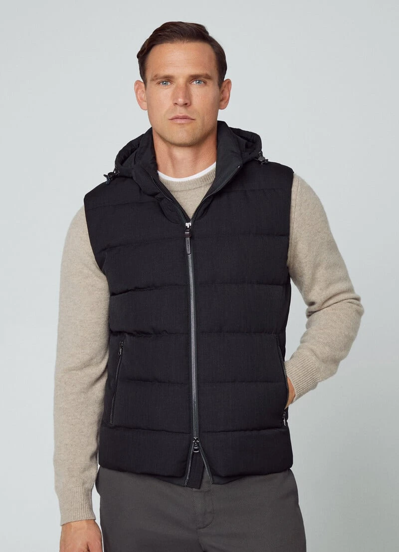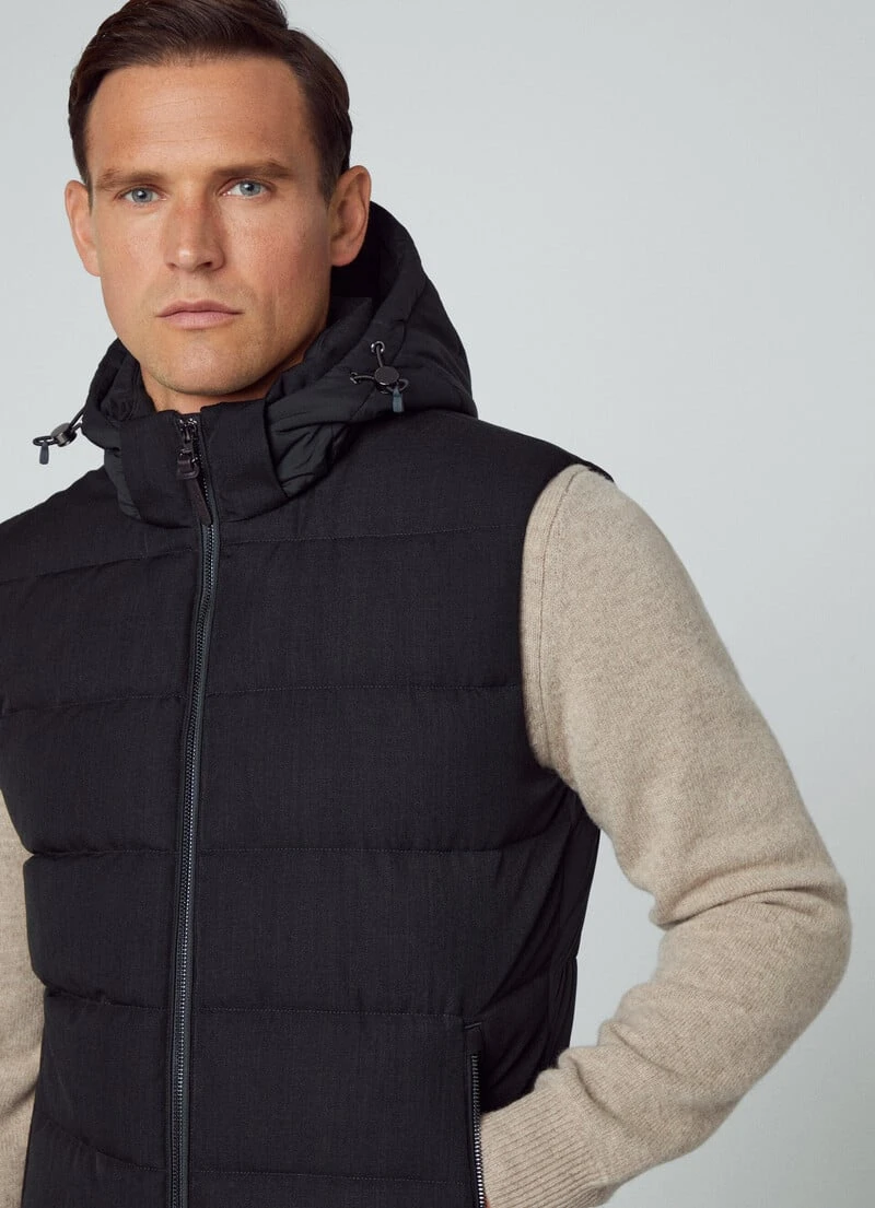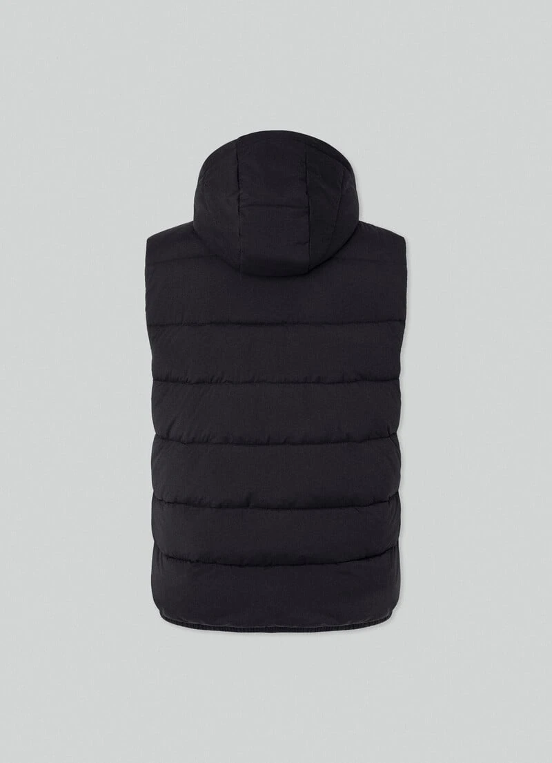 Crafted from a blend of fabrics, this quilted gilet features recycled padding, two-way front zip fastening and a removable and adjustable hood. This garment is perfect to use as a mid layer in the winter season.