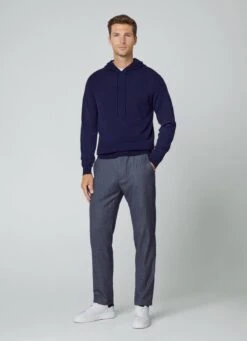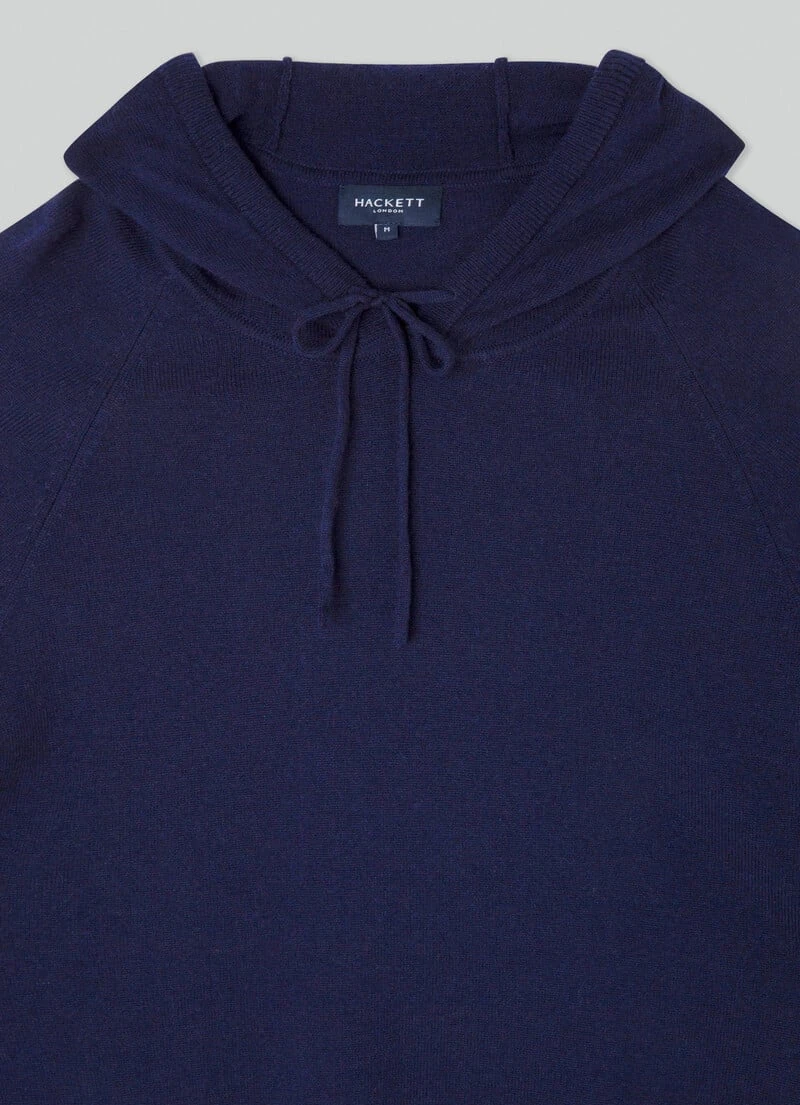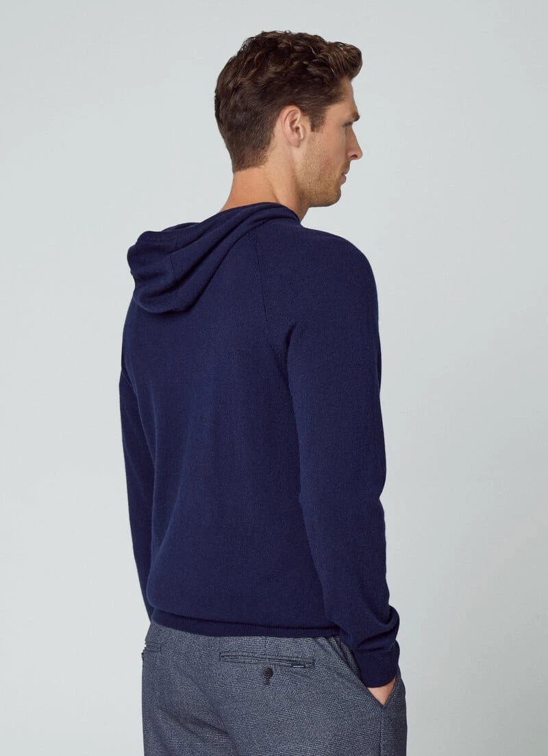 In a merino wool and cashmere blend, this hoodie features an adjustable hood and ribbed details on the cuffs and hem to keep the heat in. This is an essential garment in between seasons when the temperatures start to drop.