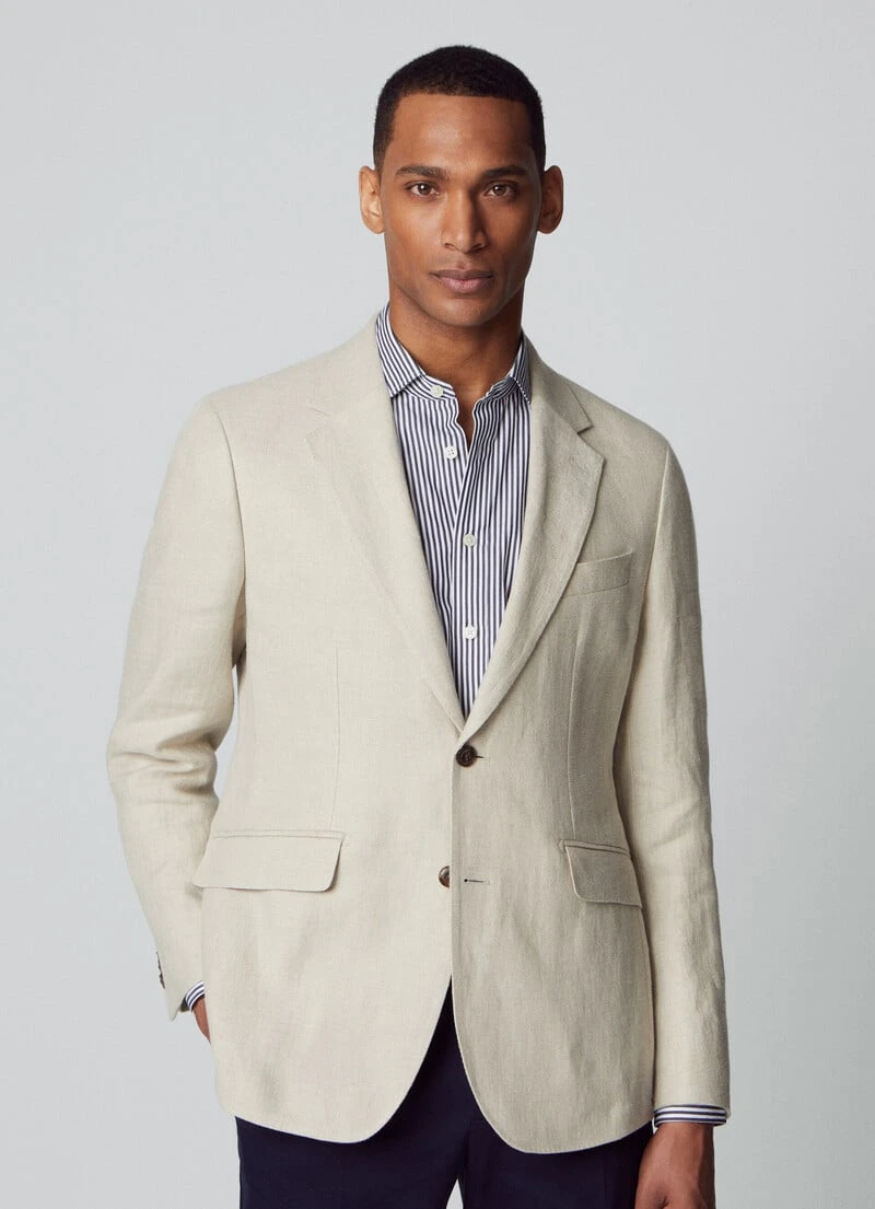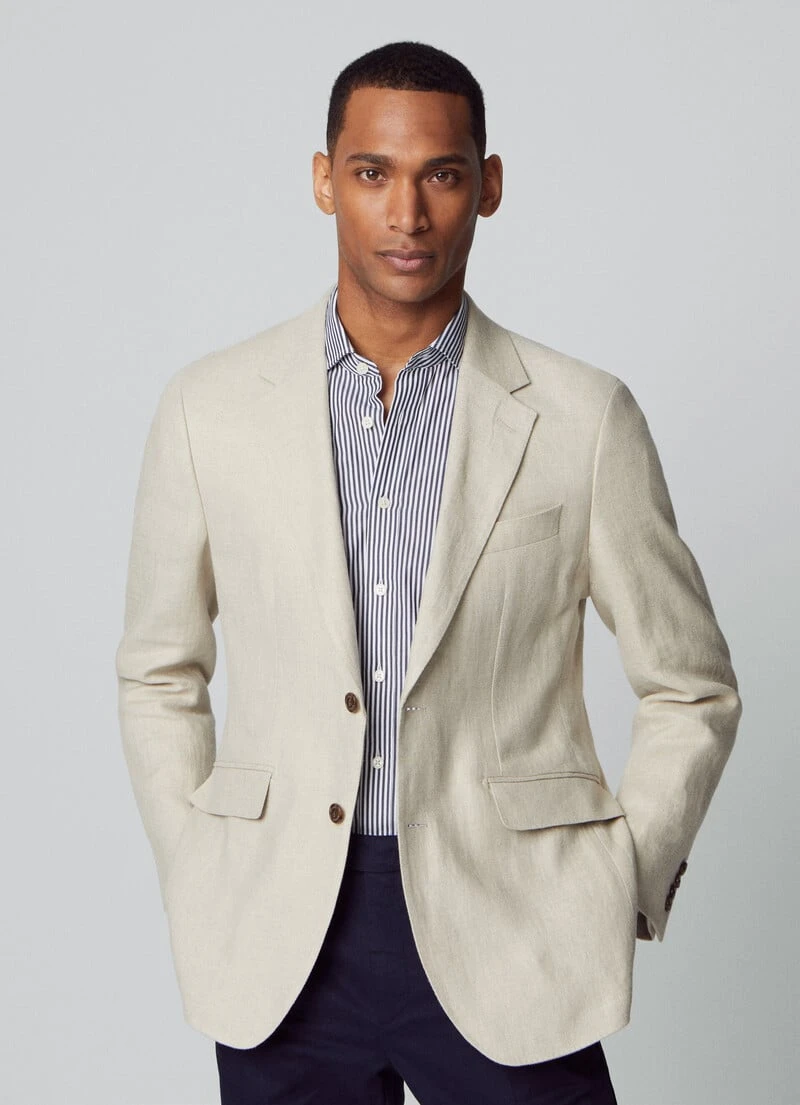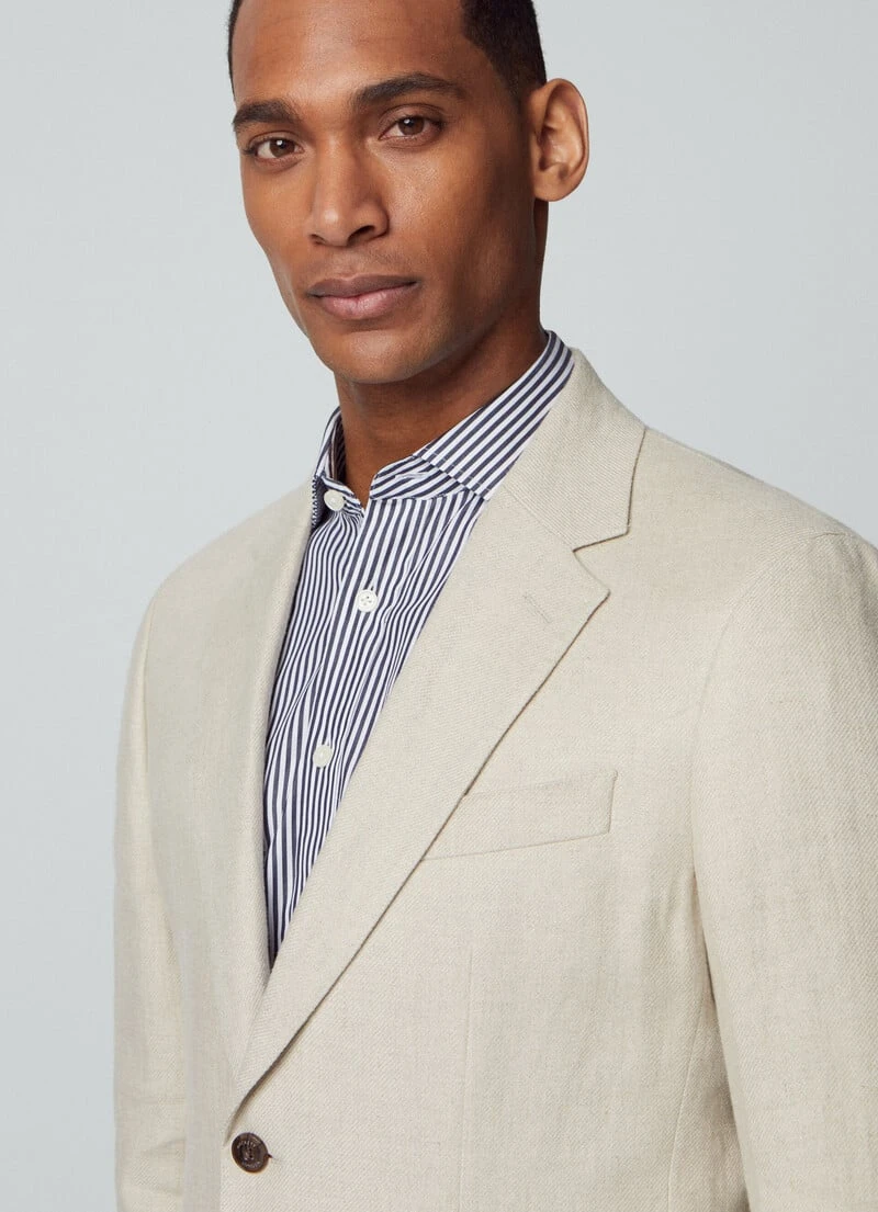 Crafted in an ultra-fine linen fabric from Italy, this blazer stands out due to its twill structure that adds texture and depth to any outfit, making it a versatile addition to any wardrobe. The classic styling features a traditional notch lapel while the half-lined interior ensures maximum comfort.