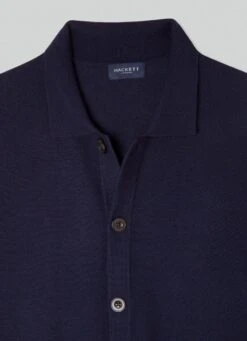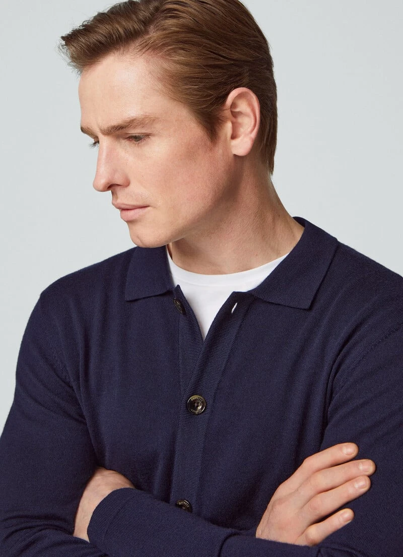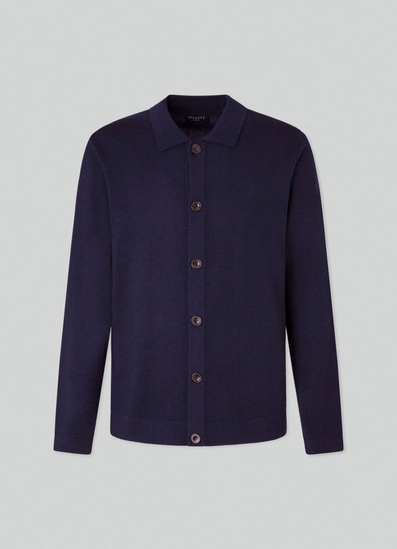 This merino wool knit overshirt is the perfect piece for layering this season. The fine stitching of the fabric will keep you warm without sacrificing elegance, and the horn look buttons provide an interesting contrast to the garment.