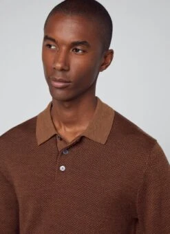 This classic knitted polo shirt comes in fine merino wool with a herringbone jacquard pattern for a unique look. This piece of tailoring combines perfectly with one of our tailored shirts and iconic blazers.