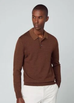 This classic knitted polo shirt comes in fine merino wool with a herringbone jacquard pattern for a unique look. This piece of tailoring combines perfectly with one of our tailored shirts and iconic blazers.