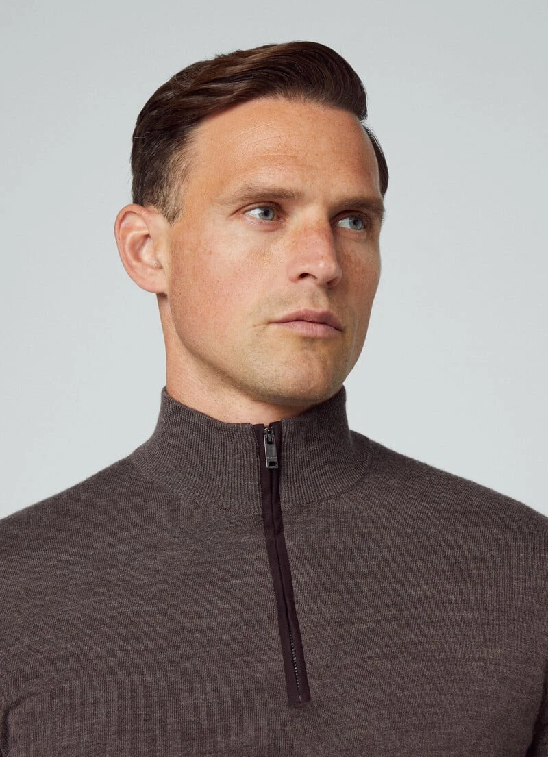 Crafted in a stylish merino wool and silk blend, this half-zip turtleneck jumper is the perfect addition to a weekend look. Combine it with a pair of our iconic chino trousers from the latest collection to complete your casual wardrobe.
