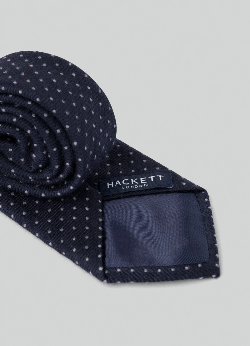 Made of an exceptional wool and cotton blend, this tie features a mini polka dot print on a solid-colour background. The refined design and versatility of the tie is perfect to enhance the style of any formal look.