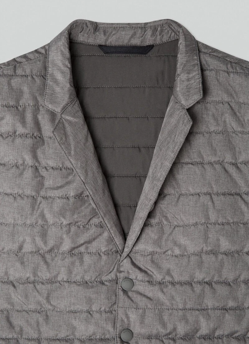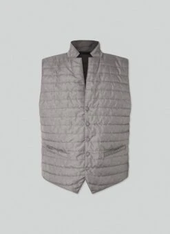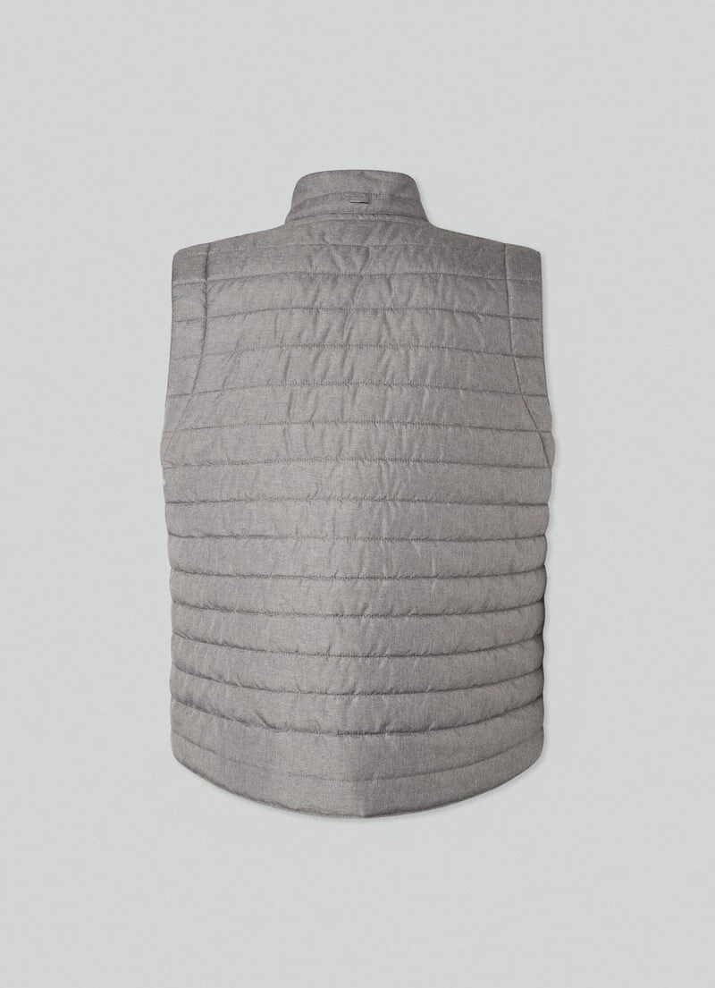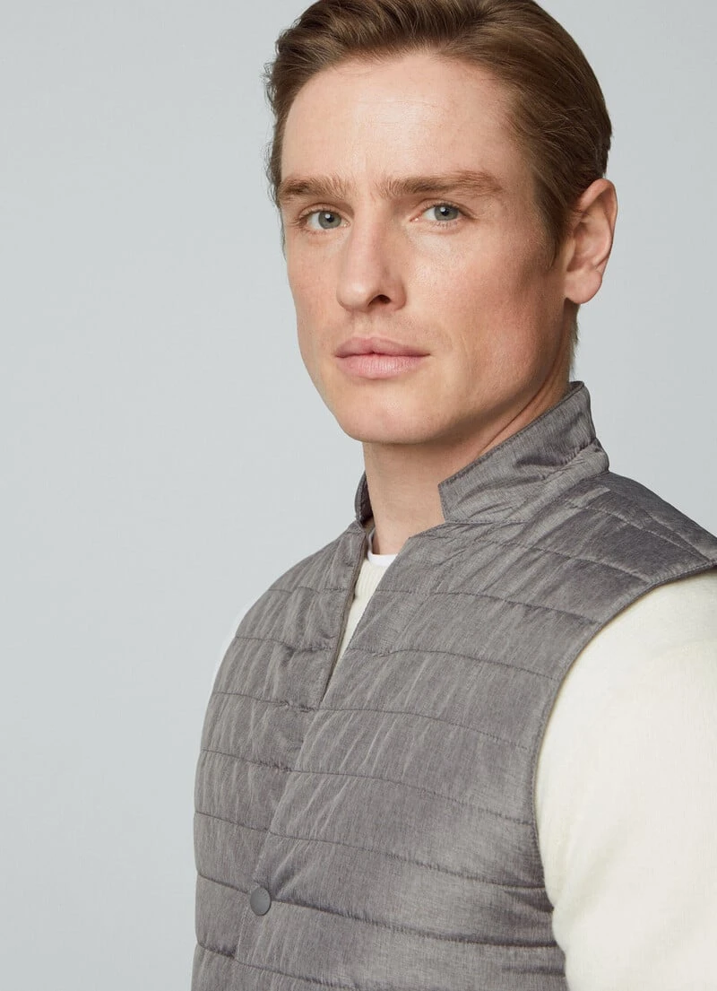This gilet mixes classic elegance with an Edwardian aesthetic. Made of matte melange nylon, the garment stands out due to the padded structure combined with a classic notch lapel, which gives it a stylish look. This item is perfect for layering with other garments from the new Hackett collection.