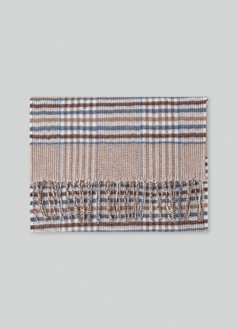 Either for a formal or everyday look, this scarf made of a delicate cashmere and wool blend is the perfect accessory to complement any wardrobe. The colourful Prince of Wales check design and the characteristic fringed edges make this garment a unique piece.