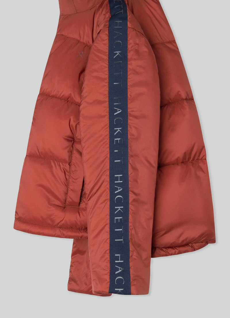 In a highly durable ripstop fabric, this puffer jacket features wide baffles combined with branded gros grain tape along the sleeves. This garment is ideal to protect your children from extreme temperatures in the winter season.