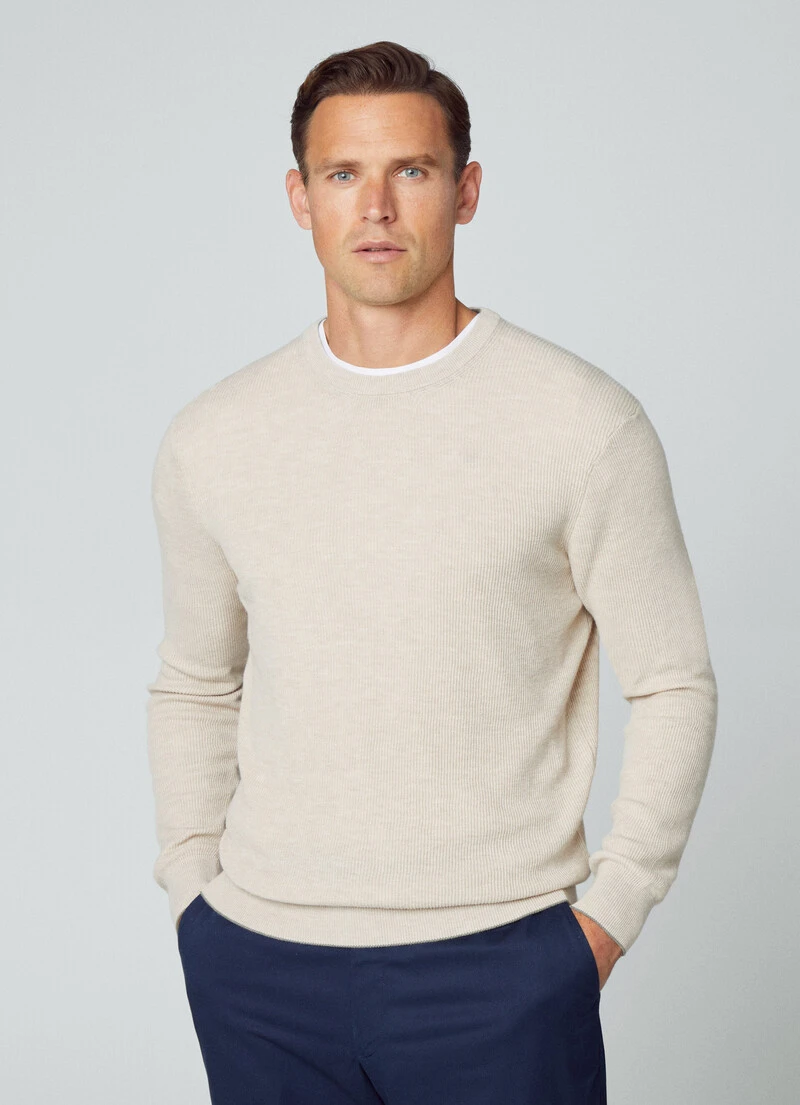 Crafted in a ribbed knit, this crew neck sweatshirt features a triangular detail below the neckline for a casual look; an everyday essential that offers comfort and warmth without sacrificing style.