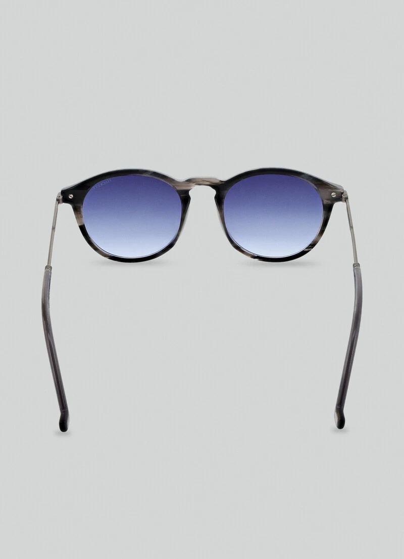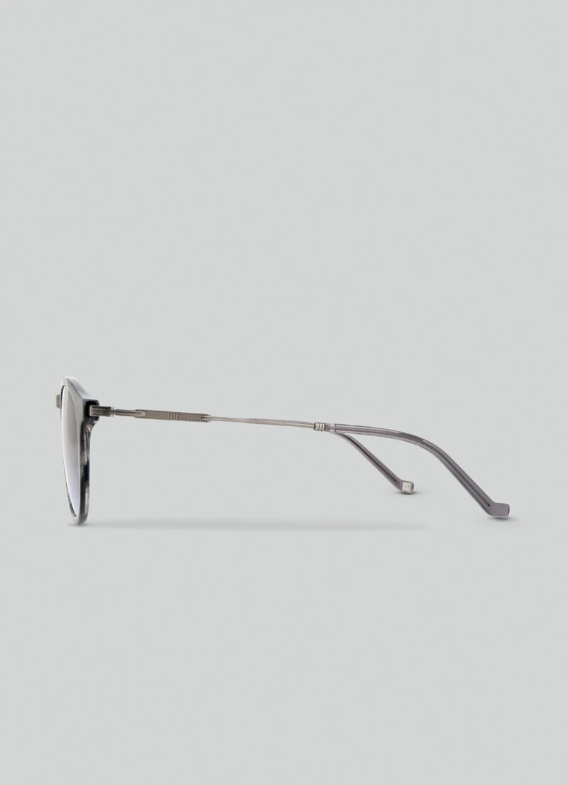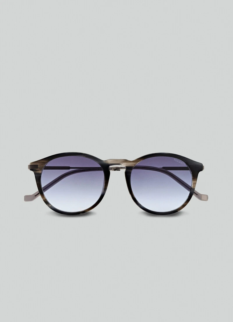 Classic sunglasses with light frame and classic round shape. The metallic frame has elegant elements in tortoiseshell and the embossed H logo.