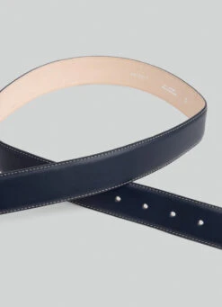 This smooth cowhide belt has contrasting details such as the seams on its edges and a shiny, metal square buckle that blends tradition and versatility in a single item. With a classic and multifaceted design, this accessory is the perfect choice to combine with any everyday or formal look.