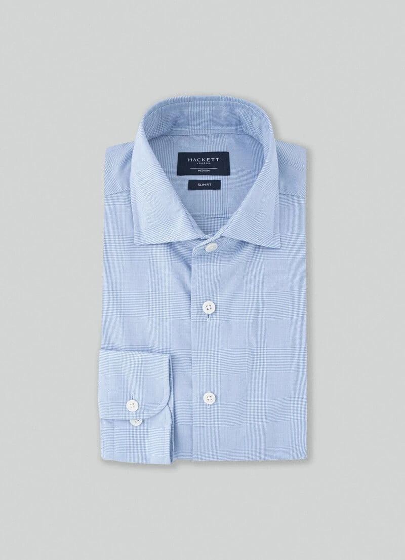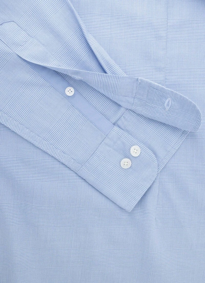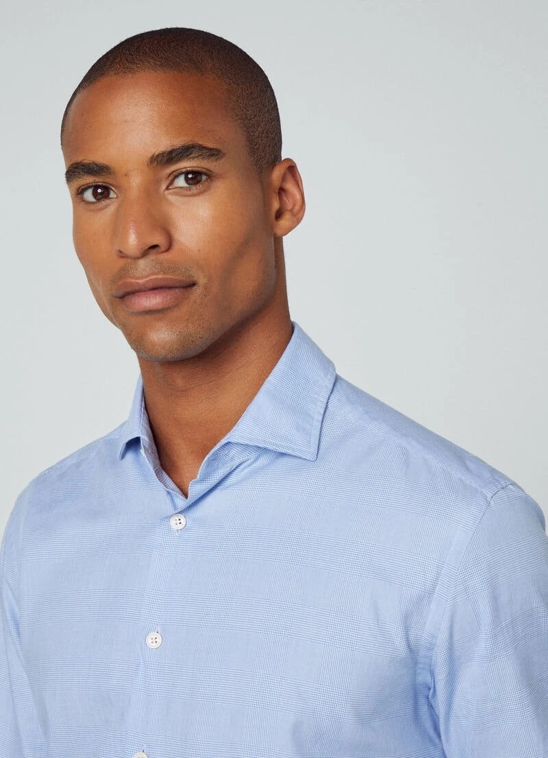 Crafted from a soft cotton fabric, this shirt features a classic Glen check pattern and a cutaway Kent collar – perfect to layer with a tie. Pair it with one of our elegant three-piece suits for formal events.