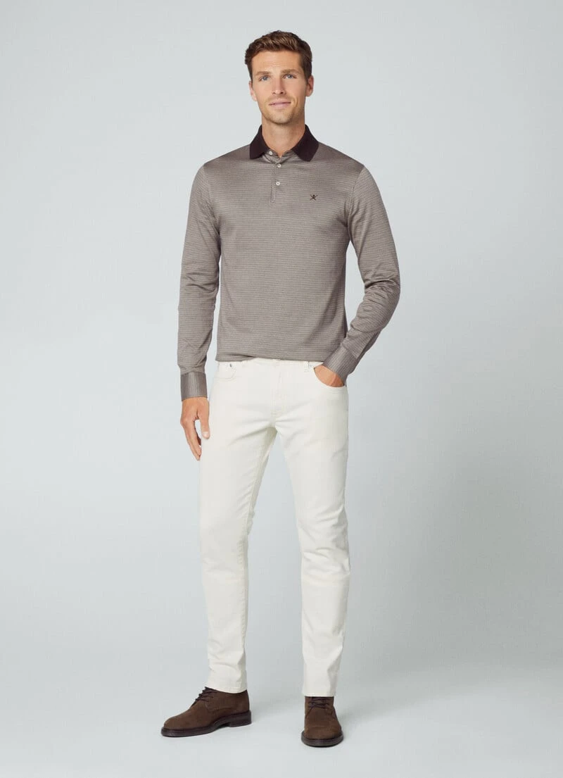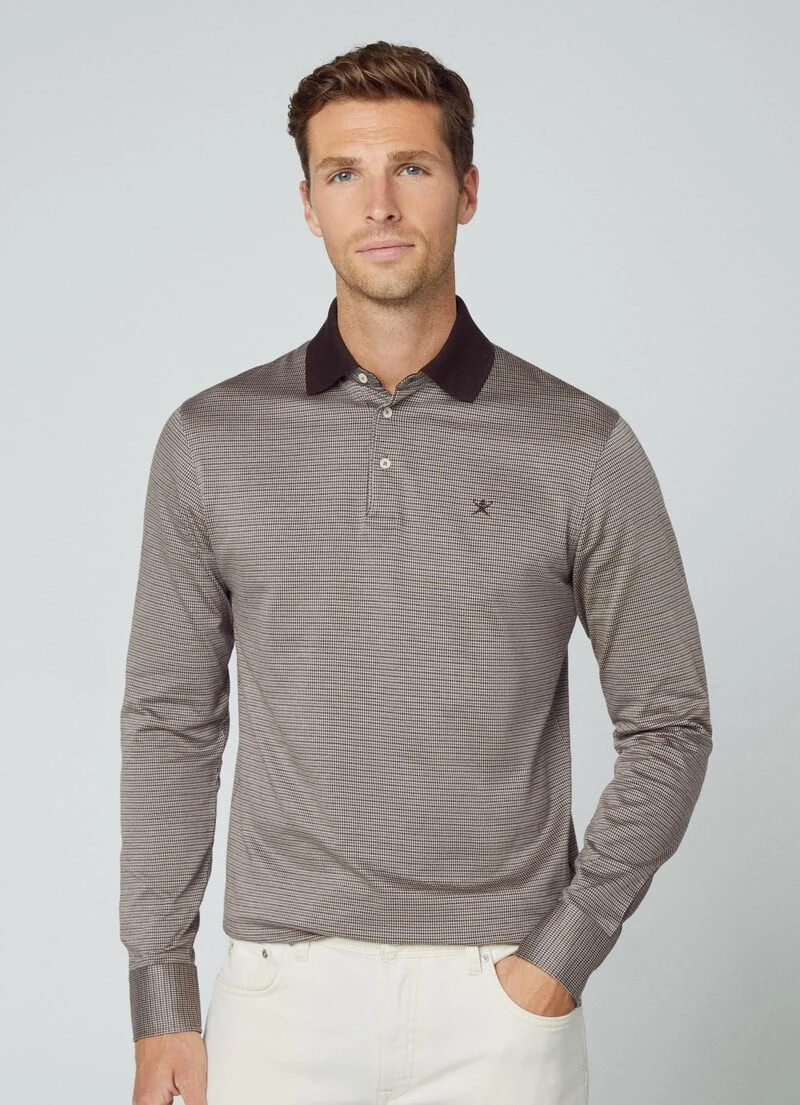 In pure soft cotton, this jersey polo shirt features a jacquard knit herringbone design for a distinctive touch. Details such as the embroidered umbrella logo on the chest and a contrasting colour tape on the neck enhance the style of this polo.