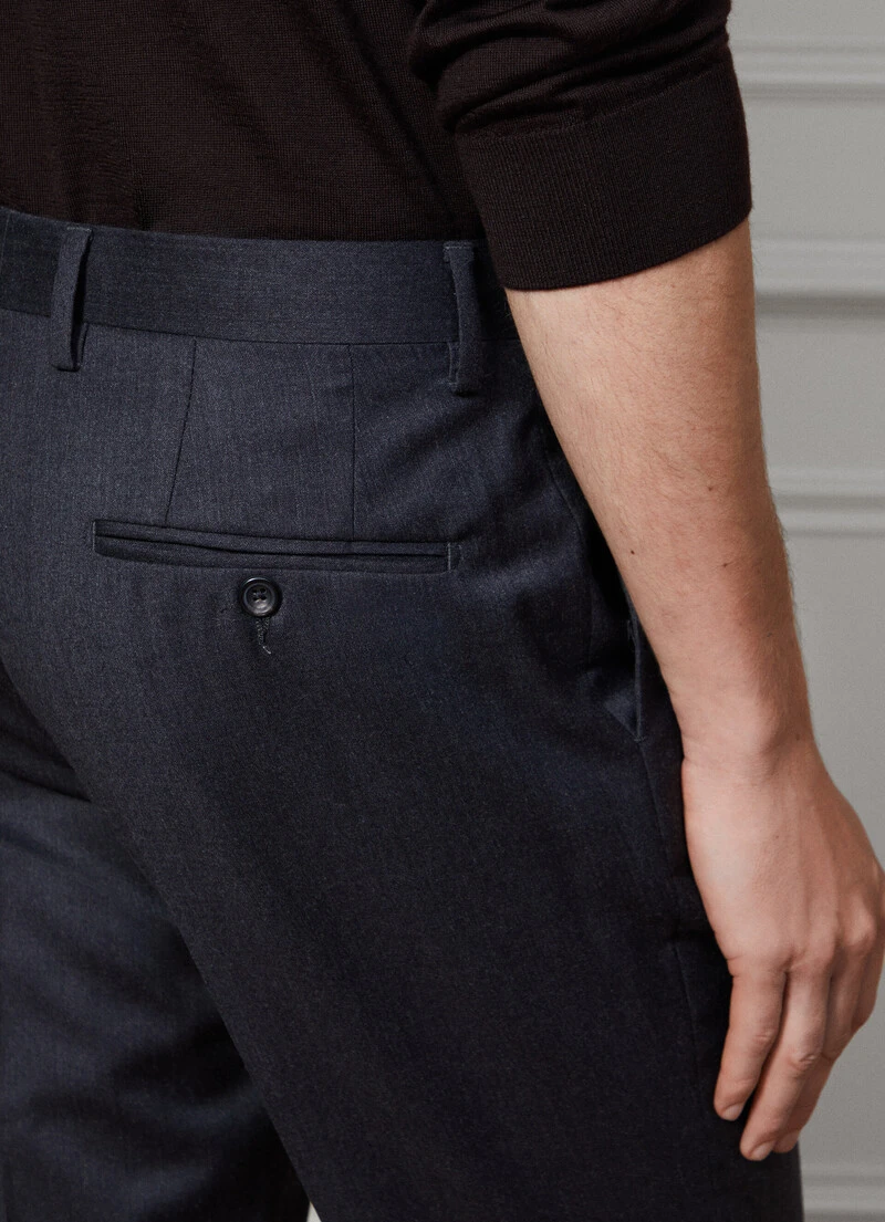 Featuring our signature Kensington slim fit, these formal trousers from the Savile Row collection stand out for their Italian wool flannel construction to give them natural stretch for maximum comfort. This garment comes in a wide range of modern colours, and is a must-have in any man’s wardrobe.