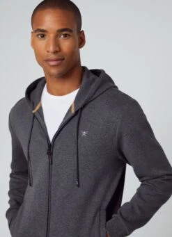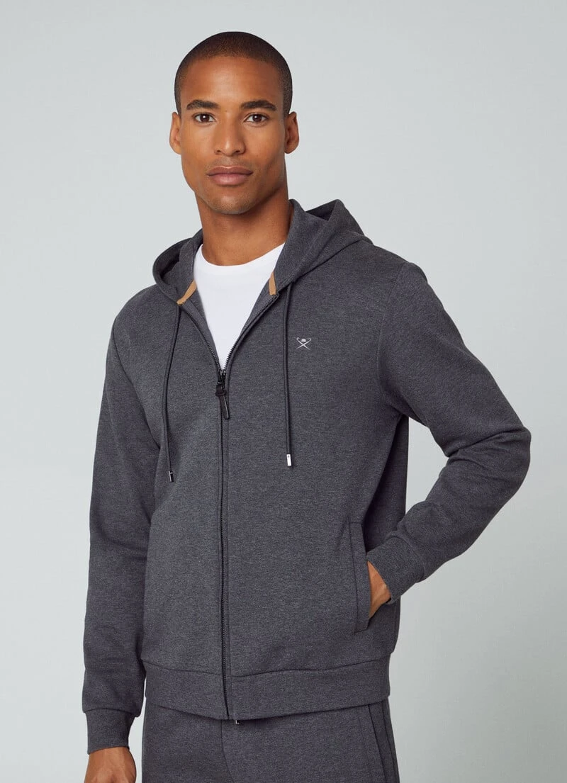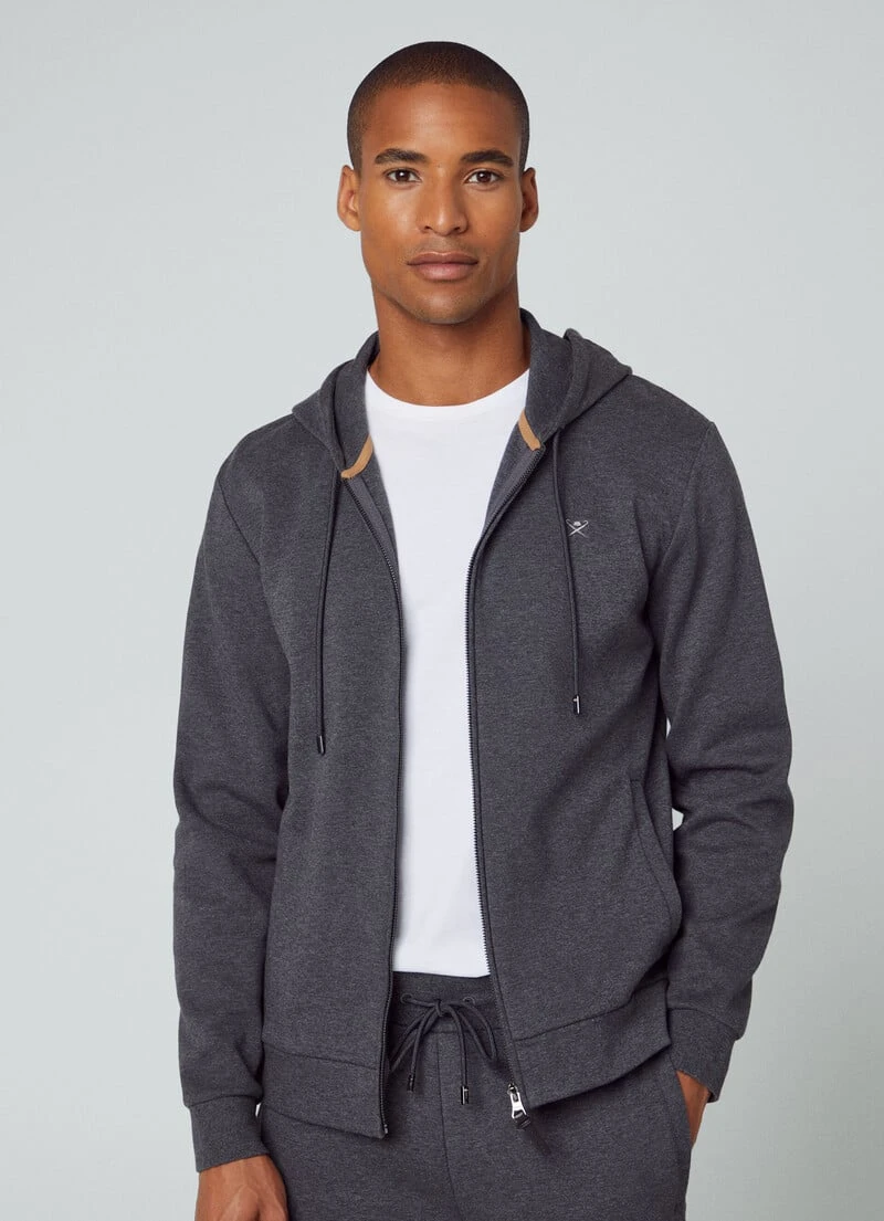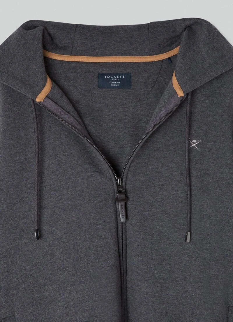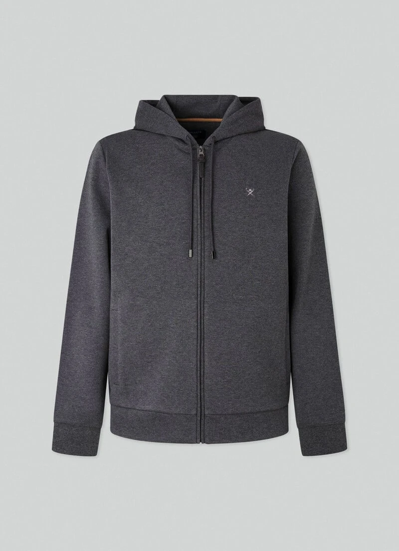 With full zip closure, this hooded sweatshirt stands out for its light cotton fabric, and is perfect to wear as a mid-layer in the winter season. This hoodie features an adjustable hood with drawstring, our signature HACKETT umbrella logo embroidered on the chest and ribbed detailing to the cuffs and hem.
