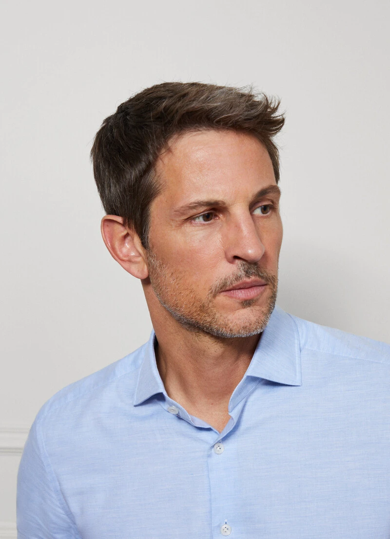 In elegant Italian flannel fabric, this shirt from the Savile Row collection stands out for its soft texture due to the ultra-fine, lightly brushed threads. It features a slim fit to enhance your physique, as well as our signature Italian Knightsbridge collar, which is perfect for wearing a tie. Complement your formal suit with this superb garment.