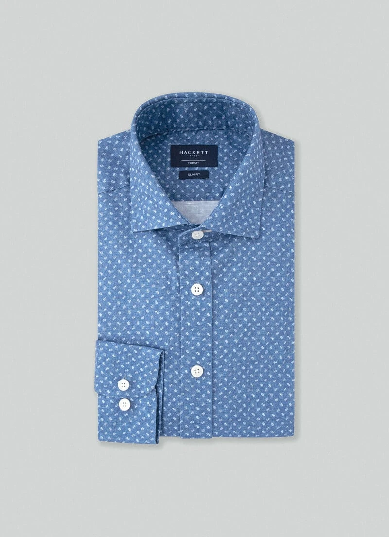For informal looks and summer holidays, this floral-print shirt on a light textured cotton fabric is a must-have for your wardrobe. Details like our signature cropped Kent collar and slim fit harmonise the structure of this exceptional garment.