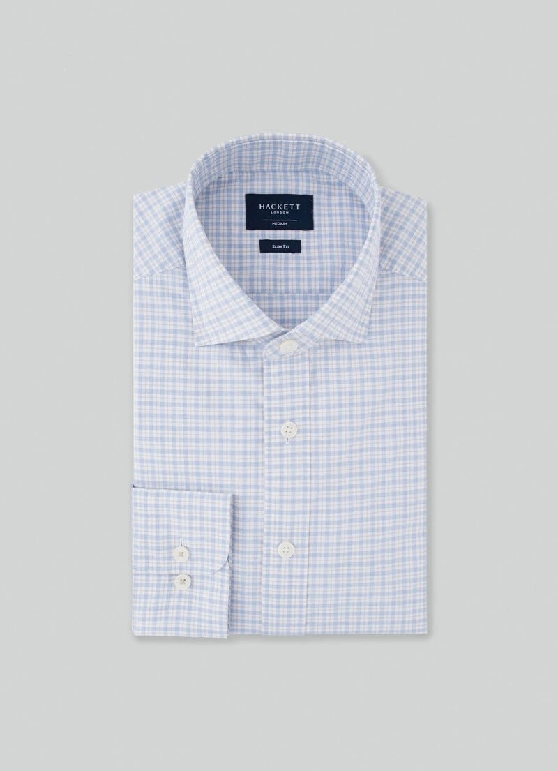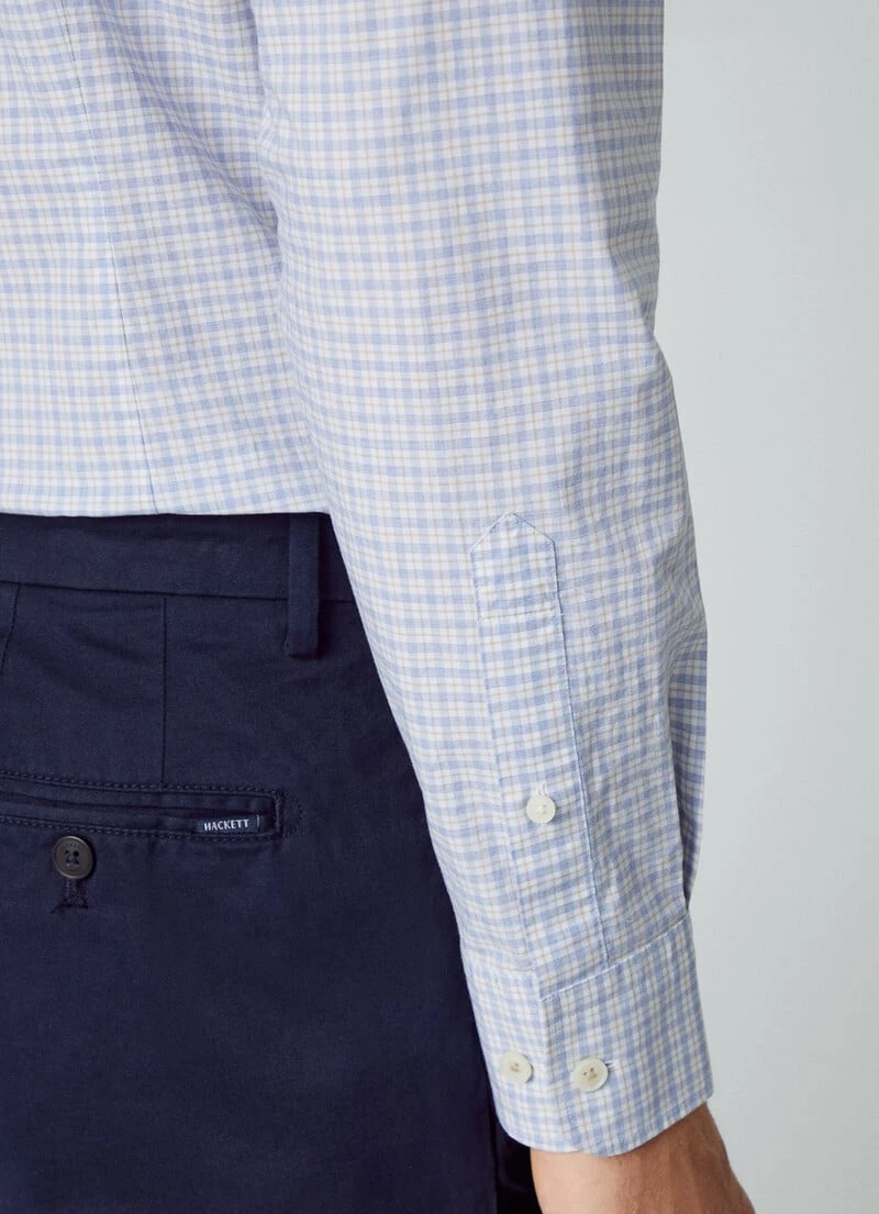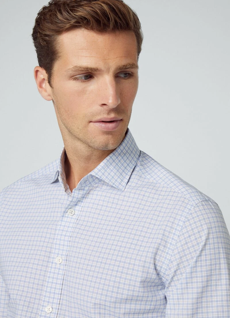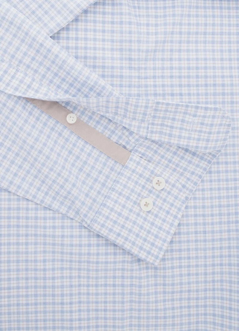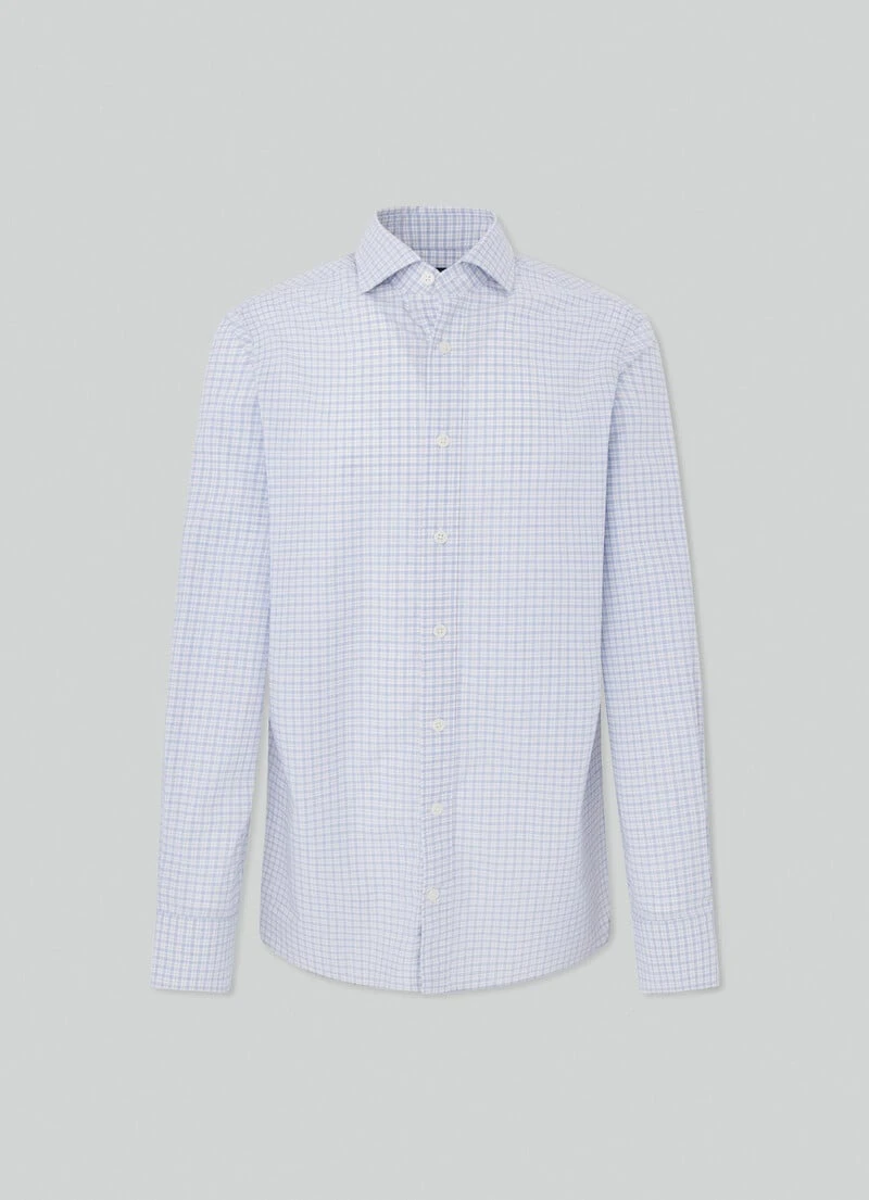 In a cotton poplin fabric, this elegant shirt features a melange check pattern along with details such as a tailored fit to enhance its silhouette, and the classic Kent collar, making it a perfect shirt to pair with one of our silk ties from the latest collection.