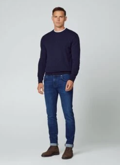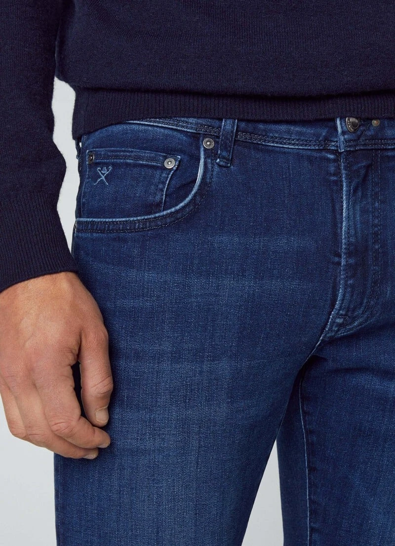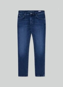 In stretch denim fabric, these 5-pocket jeans provide an elegant and more contemporary look due to the slim fit and blue powerflex wash with a slightly worn effect. They are manufactured with Wiser Wash® technology that ensures responsible water usage.