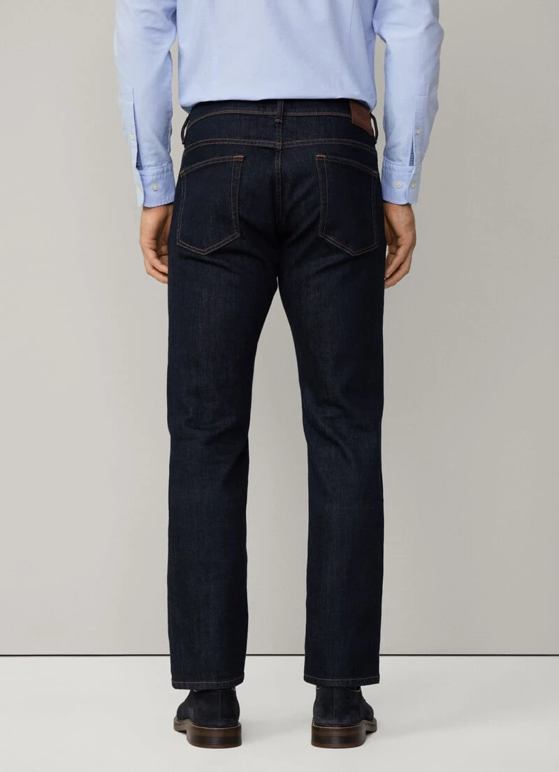 In a stretchy and flexible cotton denim fabric, these jeans stand out due to their dark wash which gives them a stylish look. Pair them with one of our Oxford shirts from the latest collection for a light and comfortable look without compromising on elegance.