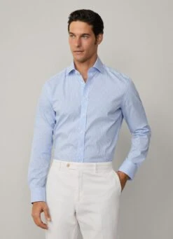 Classic cotton shirt with a bengal stripe print, slim fit and a unique check detail on the cuff placket.