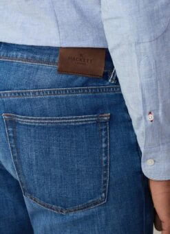 These jeans feature a subtle worn effect at the knee and come in a classic vintage wash. Made of a stretch fabric with our popular Newburg slim fit, they feature our tonal umbrella logo embroidered on the fifth pocket, and HACKETT brand detailing on the inner waistband.