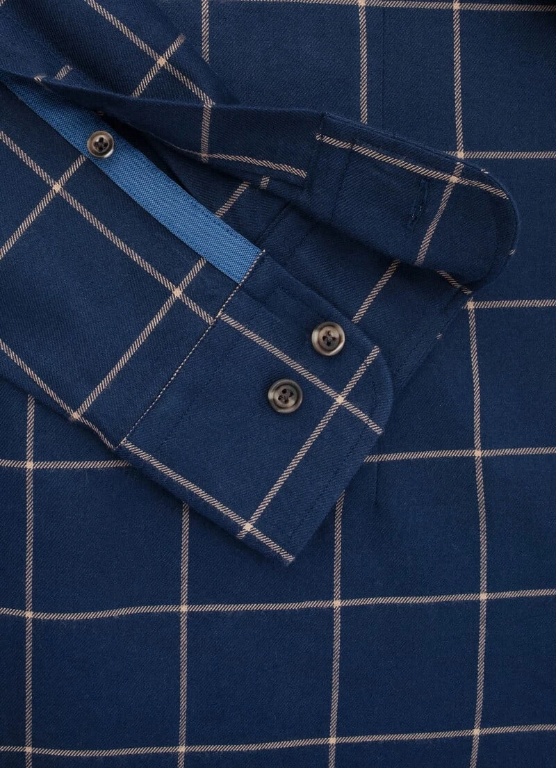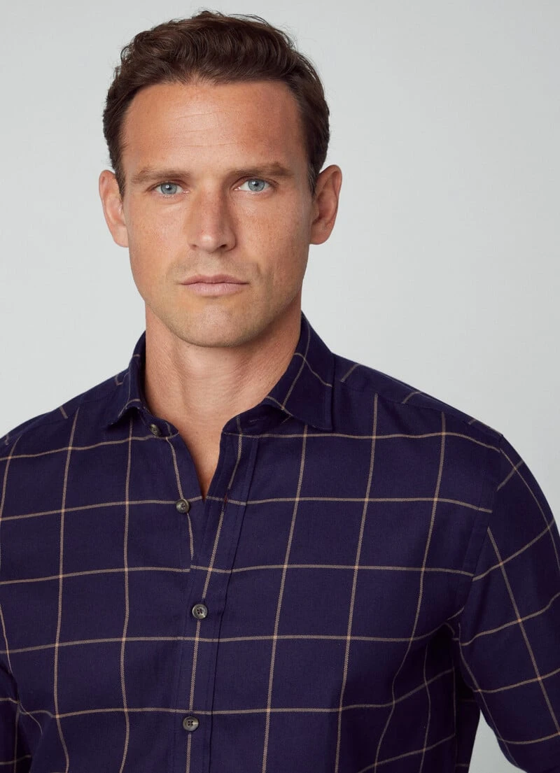 This windowpane check shirt is made from a soft cotton flannel to keep you warm in the winter season. Pair it with one of our seasonal puffer gilets to stay warm on colder days without sacrificing style.