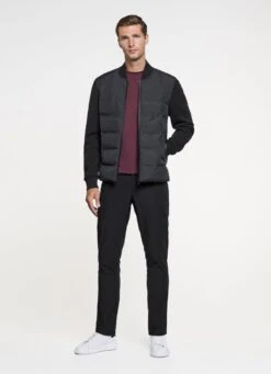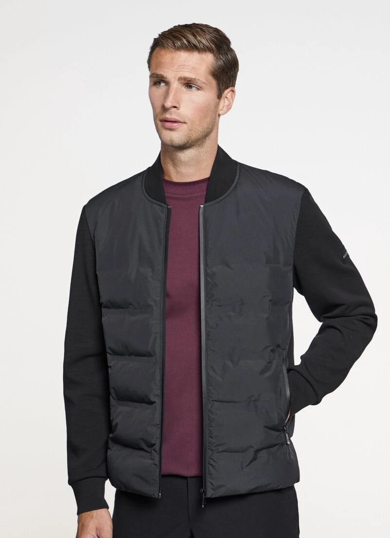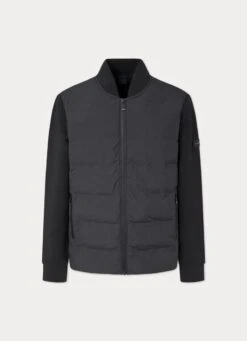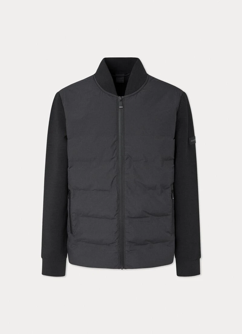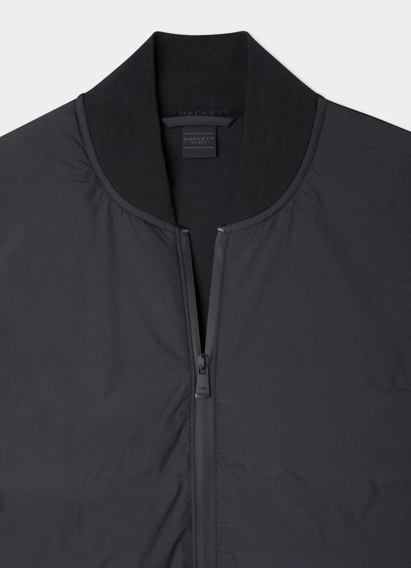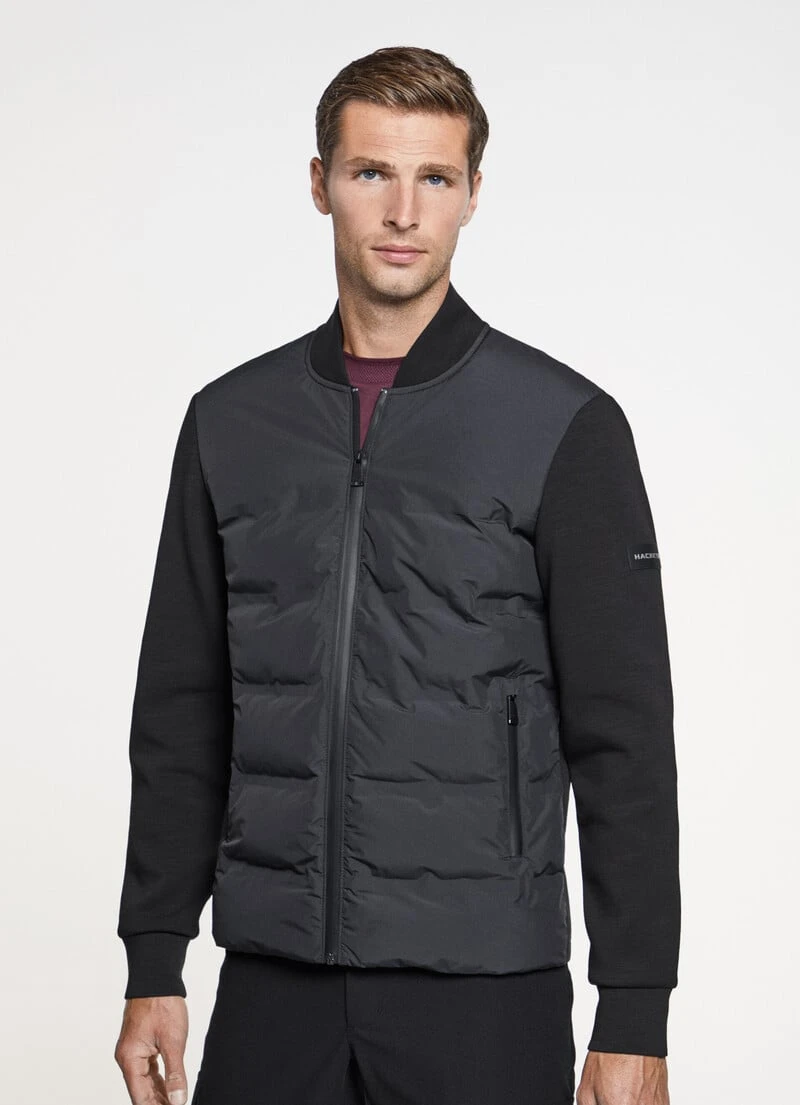 This sporty bomber-style jacket stands out for combining soft stretch cotton fabric with a padded structure in matte tones on the front. Details such as the characteristic perkins collar and the waterproof zips in contrasting colours complement this superb garment.