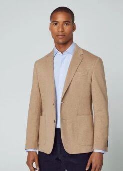 Crafted in a stretch cotton fabric, this double-faced blazer with eye-catching contrasting tones offers exceptional comfort. The half lining ensures greater freedom of movement while the patch pockets enhance its casual and elegant style.