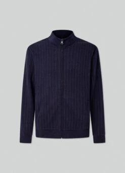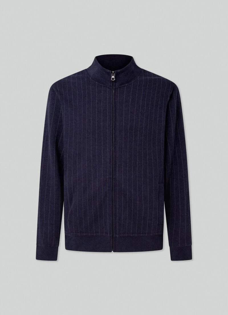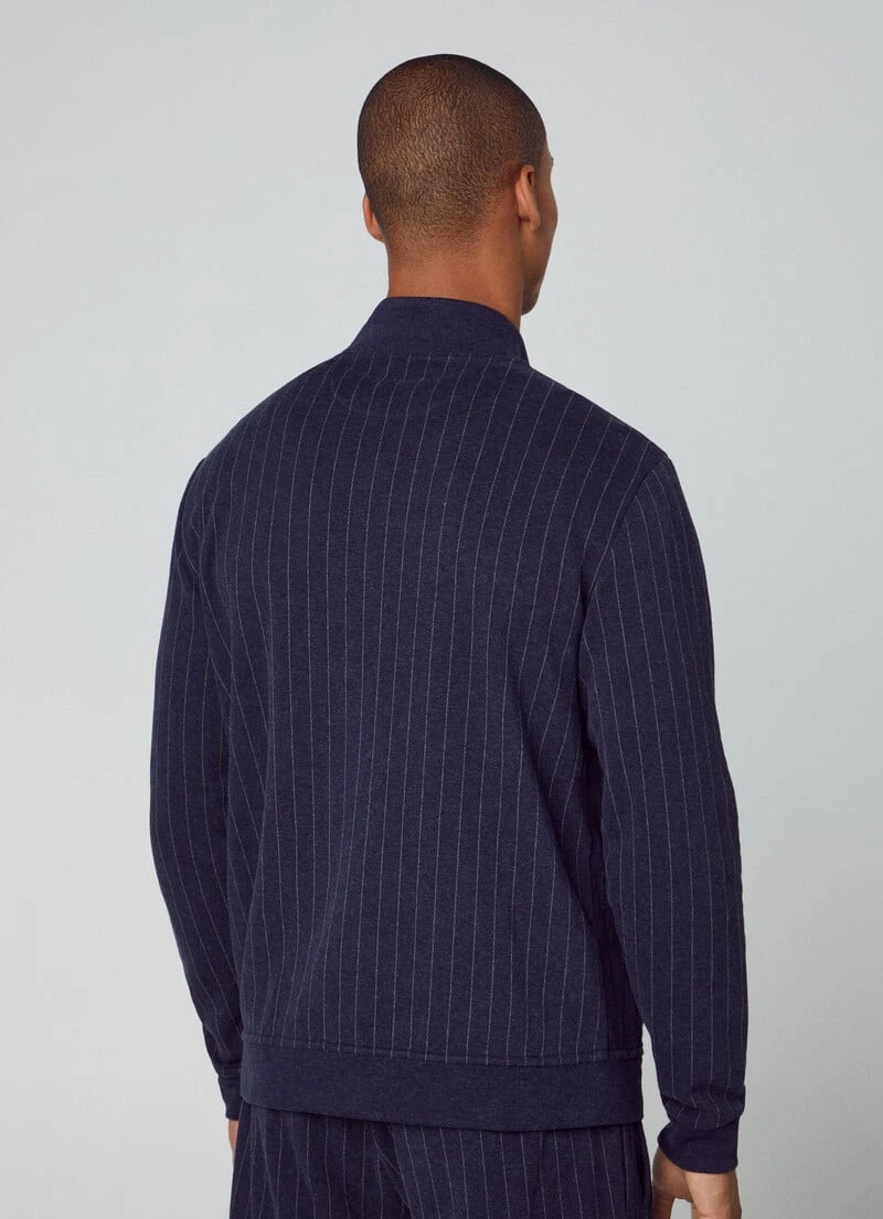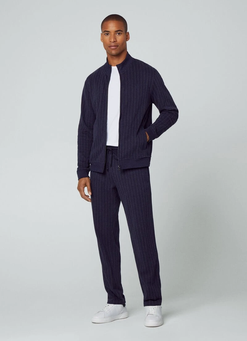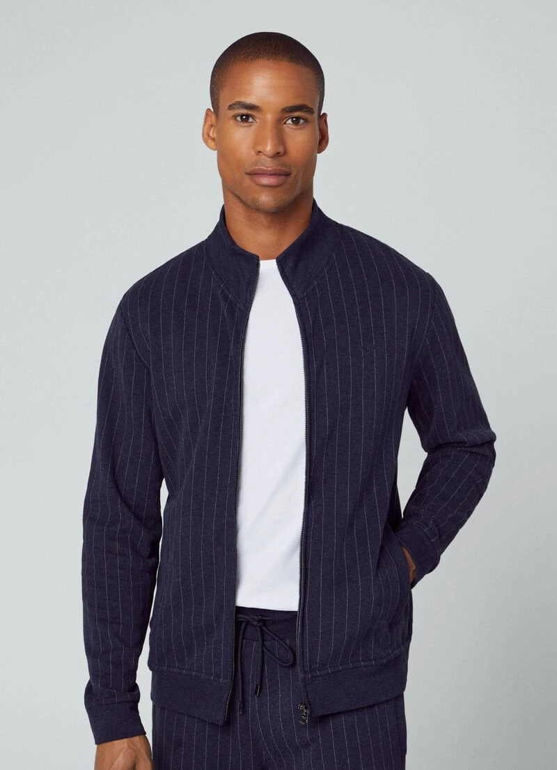 Inspired by the elegance of our iconic suits, this track jacket replicates their pinstripe design on soft, pure cotton jersey, and is the perfect combination of comfort and style.
