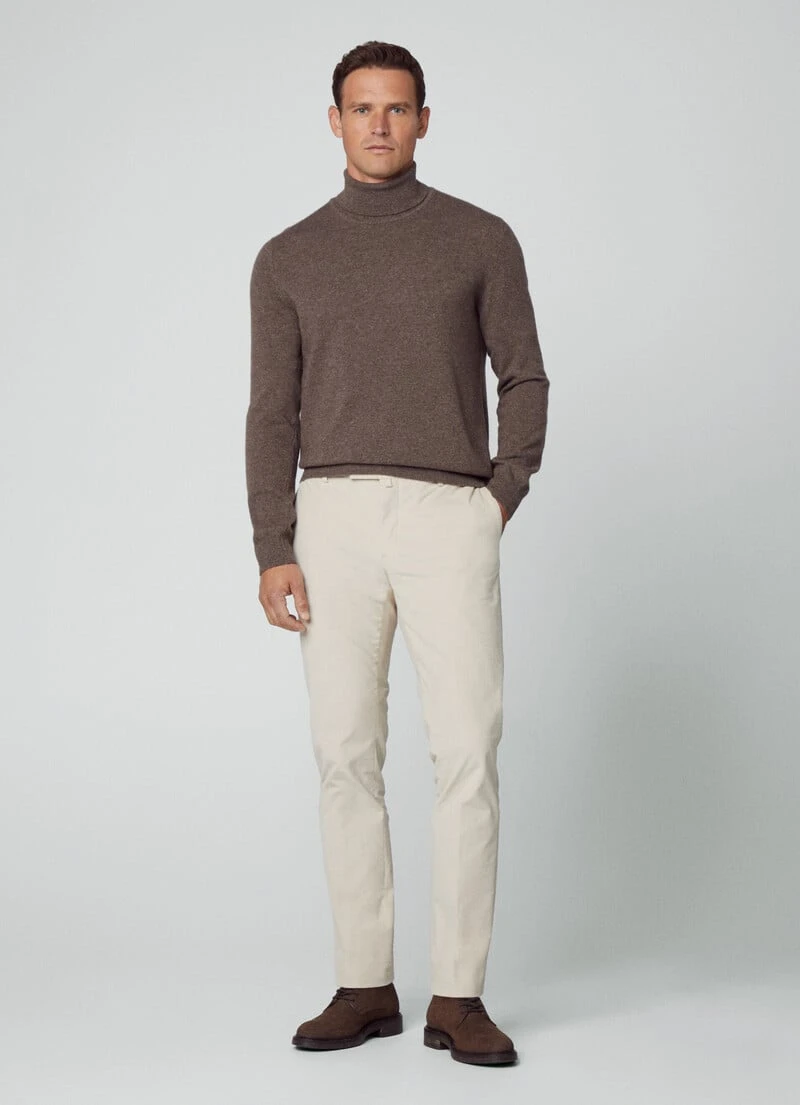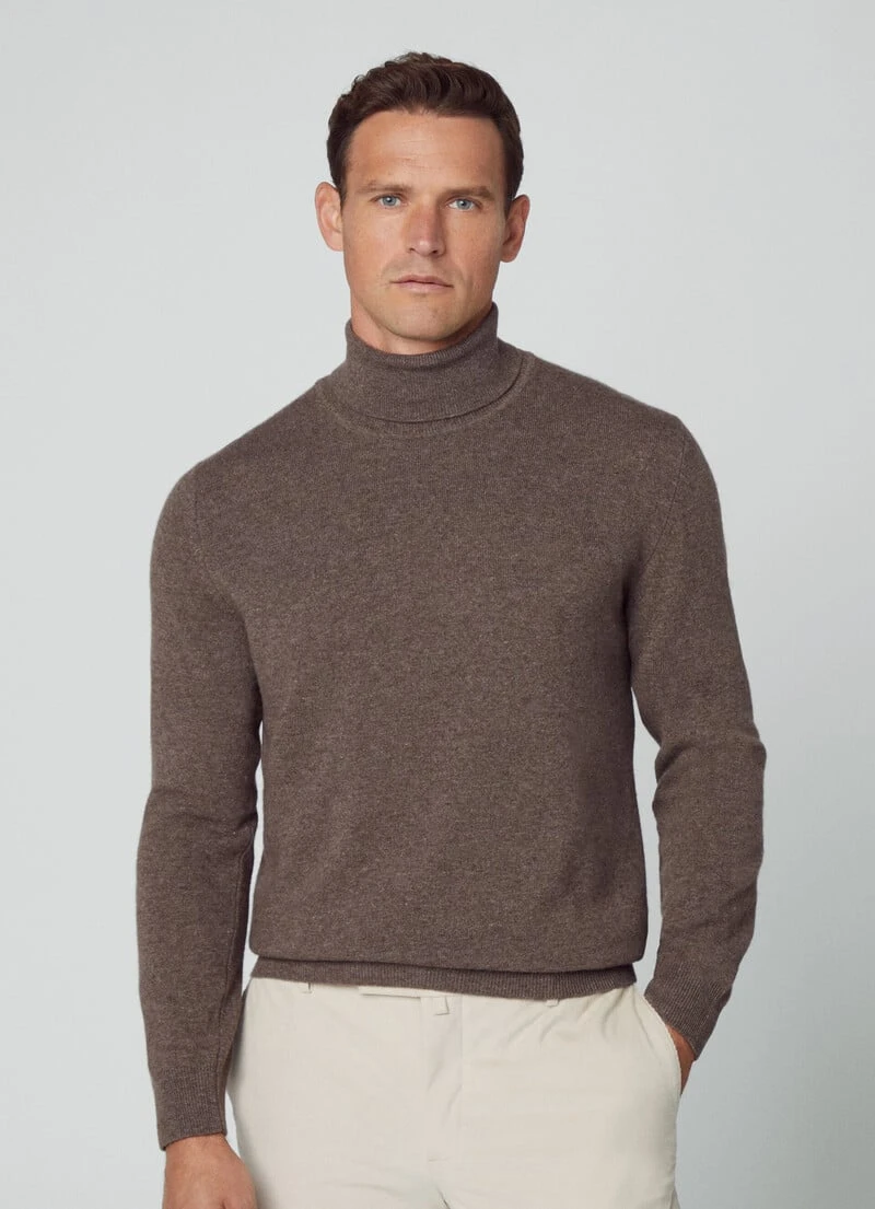 Crafted in a blend of lightweight, flowing materials including wool and cashmere, this roll neck features eye-catching elbow patches in a soft, suede-like material. Combine this jumper with a pair of chinos from our latest collection.