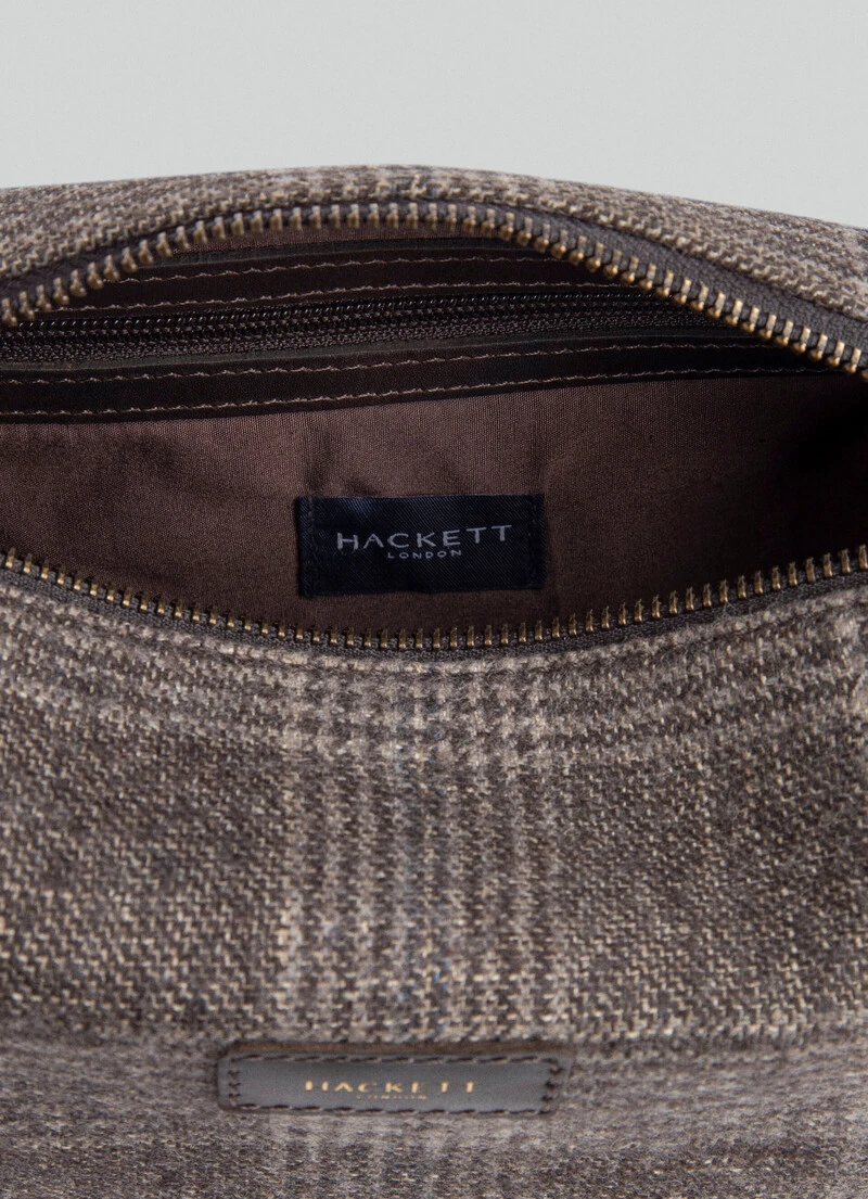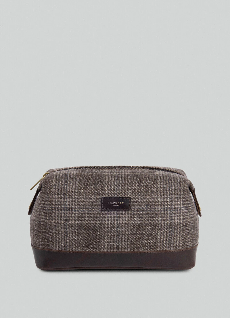 This wash bag is an elegant and practical, must-have accessory for your travels. Made in a check fabric with leather details, it features side buttons that allow you to adjust the interior space according to your needs and an interior pocket to organise your personal toiletries.